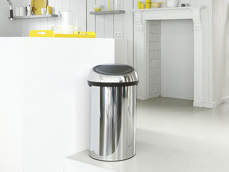 Funkcjonalny wysoki kuchenny kosz na śmieci otwierany dotykowo o pojemności 60 litrów.