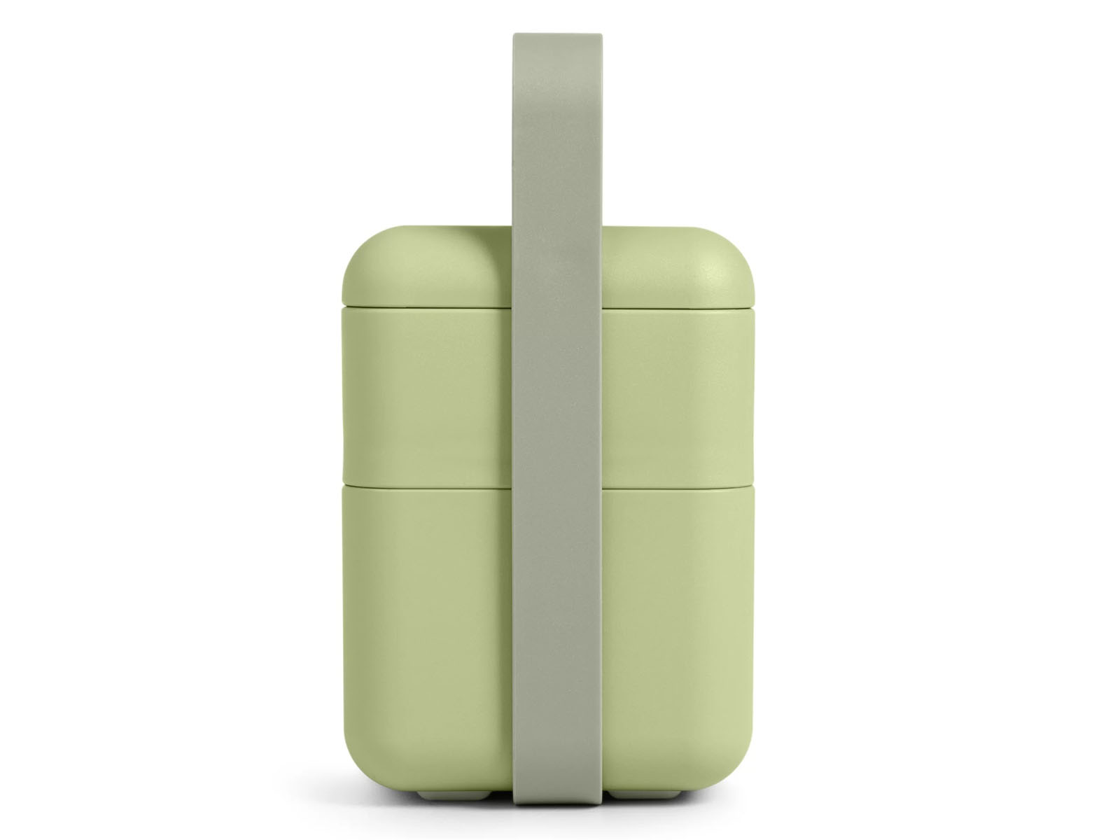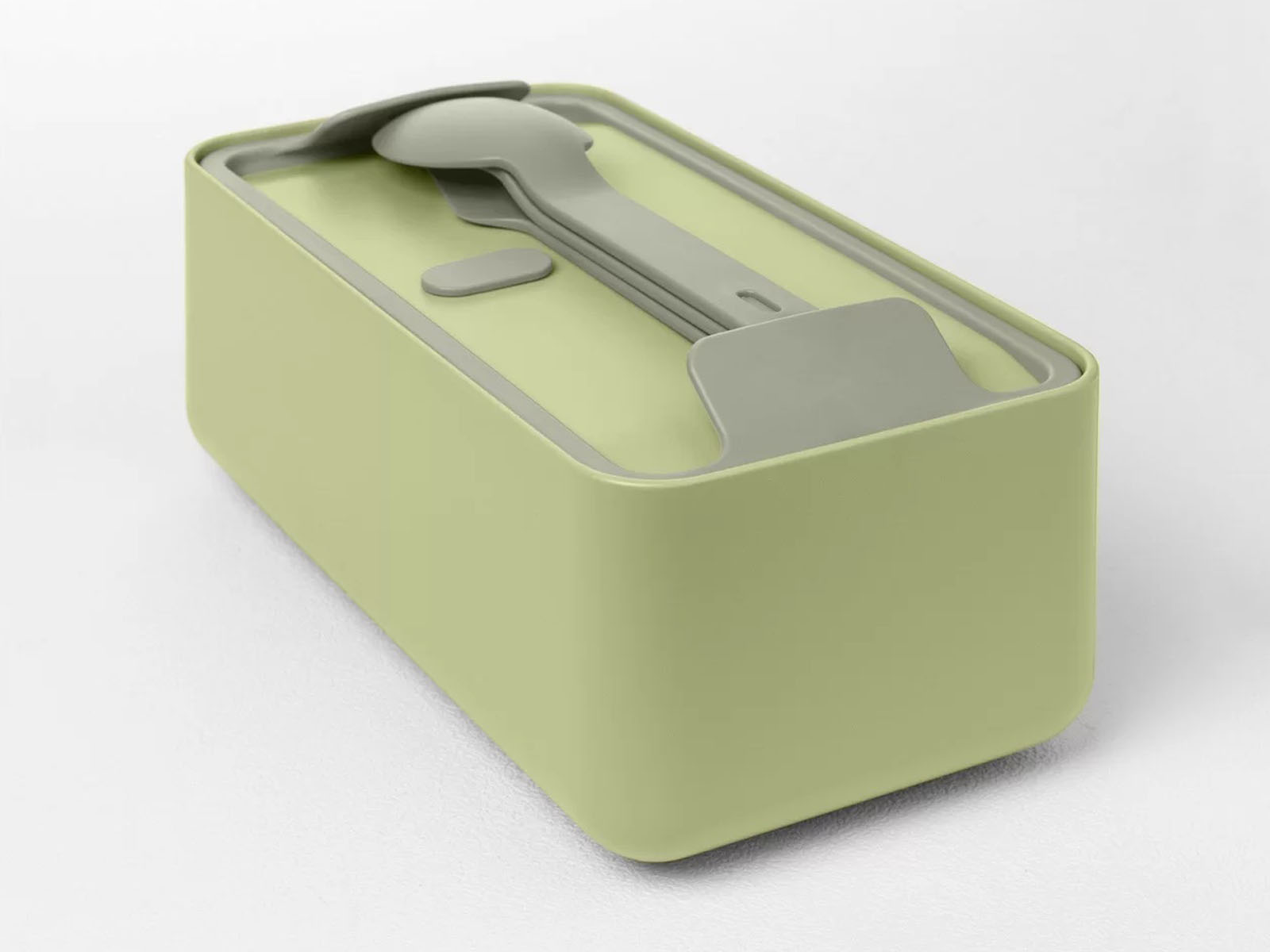 Wewnętrzny, ruchomy separator dzieli żywność, aby zachować ich najlepszy smak i konsystencję. Specjalny otwór odpowietrzający umożliwia równomierne nagrzewanie i bezpieczne użytkowanie w mikrofalówce. Hermetyczna pokrywa z otworem na słuchawki lub kabel do ładowania smartfona, staje się zarazem stabilną podstawką pod telefon. Łatwe zamykanie i otwieranie nie powodują szarpnięcia i przemieszczania się jedzenia wewnątrz. Dodatkowym zabezpieczeniem przed otwarciem jest efektowny pasek, który służy równie do wygodnego przenoszenia twojego posiłku. Zestaw zawiera sztućce, które kompaktowo umieszczone są na wierzchniej części pojemnika tuż pod pokrywą główną.