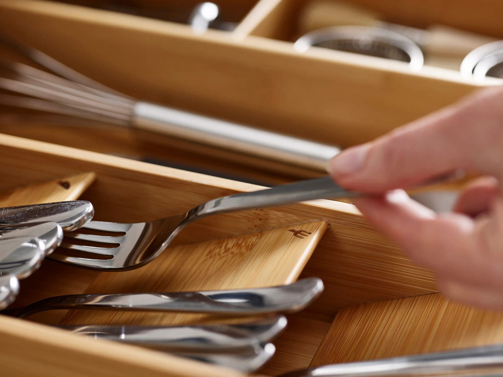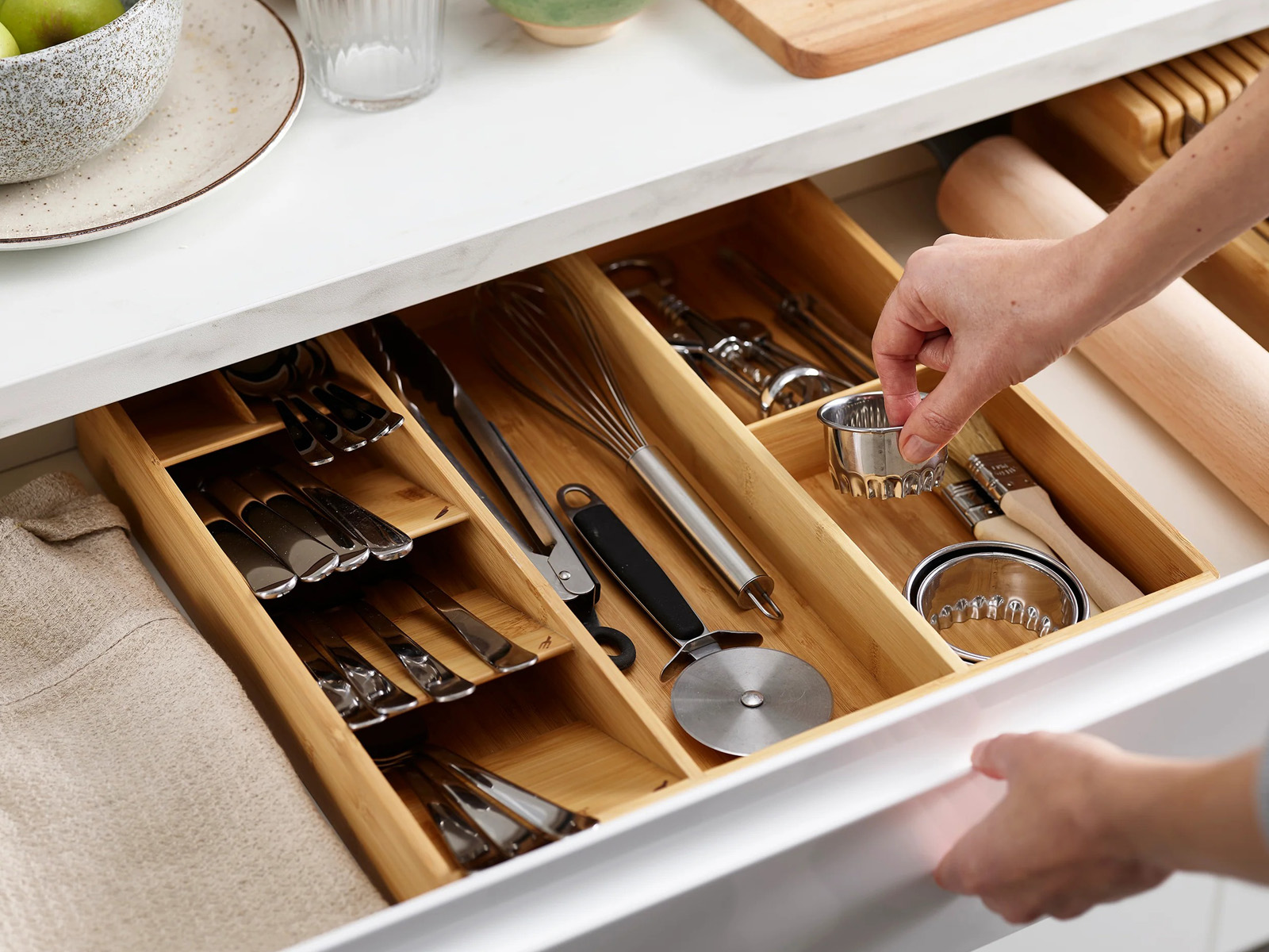 Elegancki i praktyczny organizer wkład do szuflady na sztućce, przybory oraz akcesoria kuchenne.