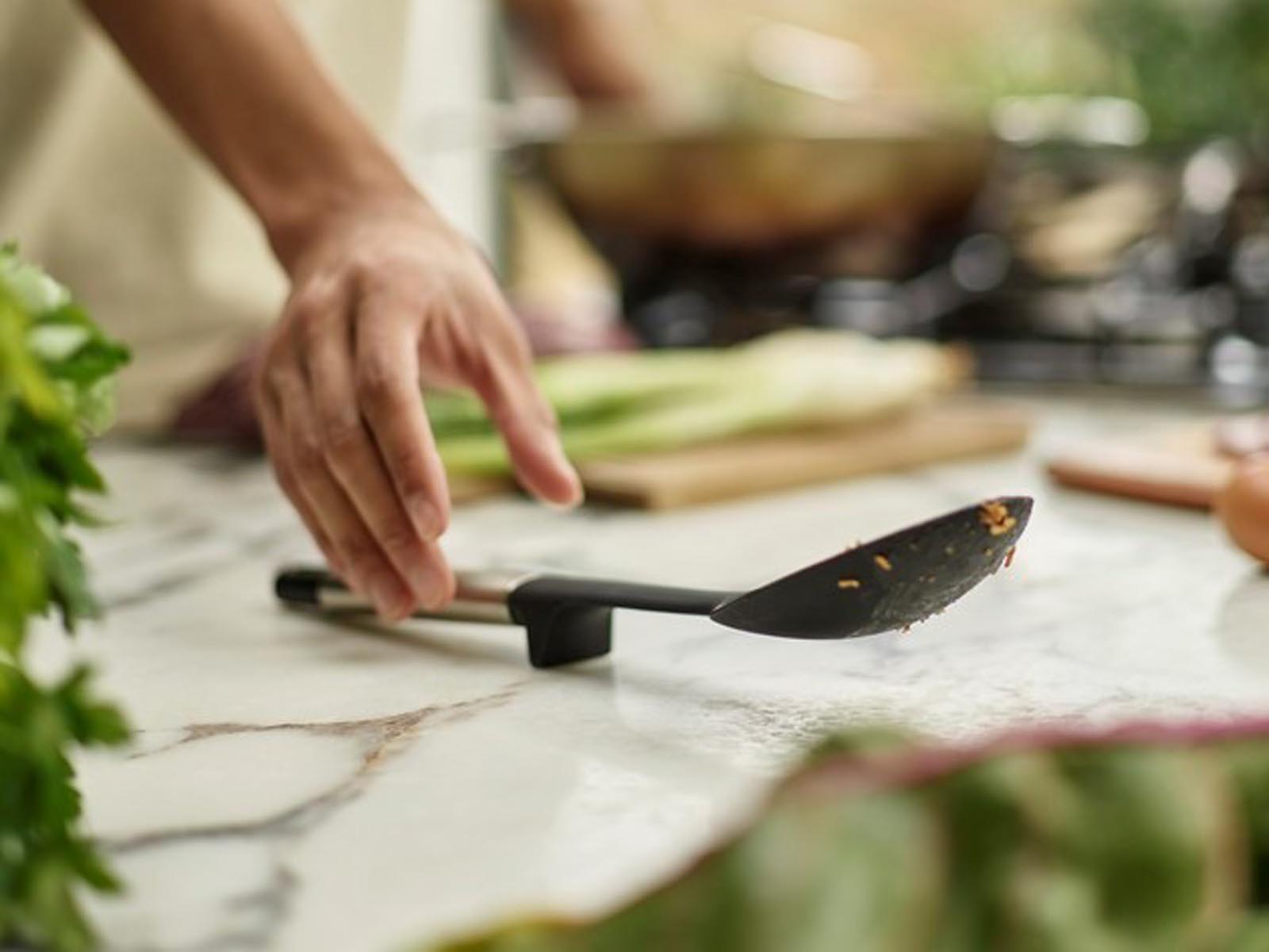 Łyżka kuchenna Joseph Joseph Elevate ułatwia gotowanie i smażenie w naczyniach z powłokami non-stick, zachowując przy tym pełną precyzję działania.
