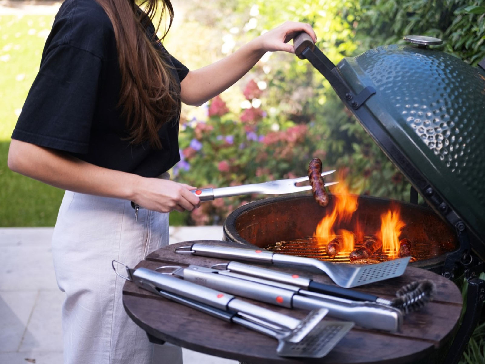Wszystkie akcesoria do BBQ z kolekcji GrillOut posiadają wysuwaną głowicę z częścią uchwytu. Pozwala to na skrócenie narzędzi po użyciu, dzięki czemu zajmują mniej miejsca podczas przechowywania. Dodatkowo wyposażone są w pętlę do zawieszenia na haczyku w kuchni lub przy grillu.