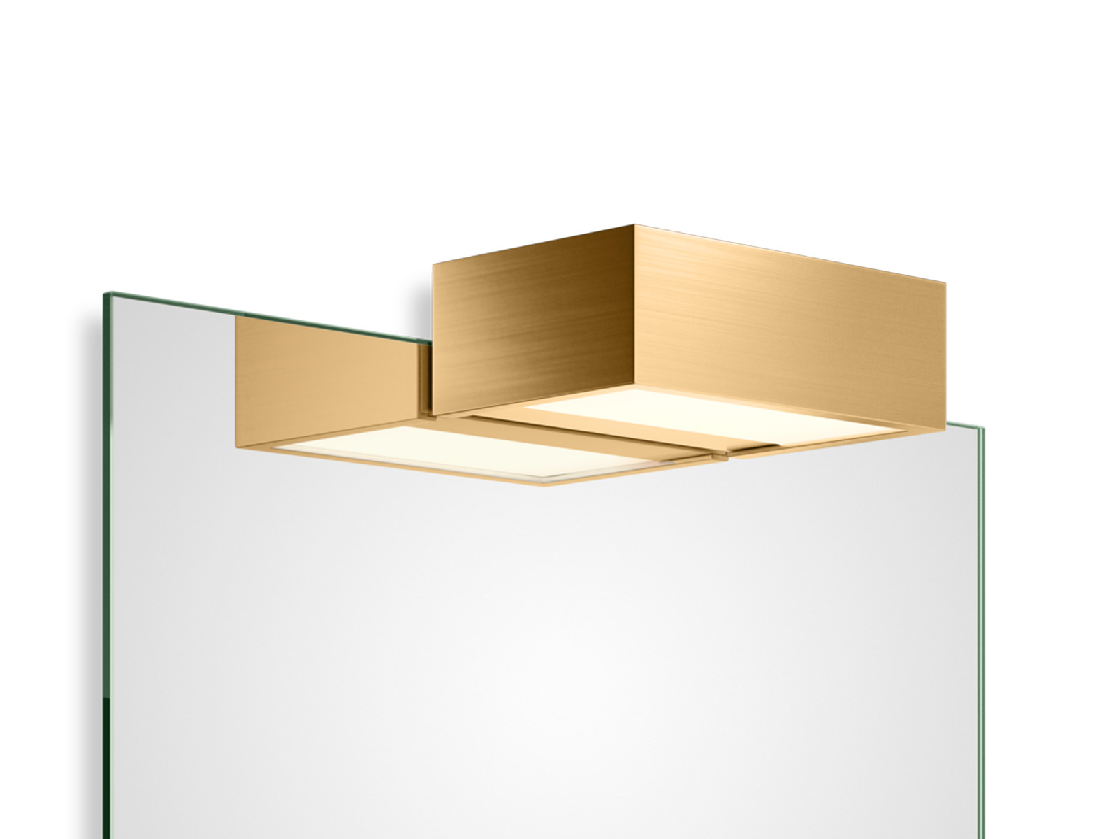 Elegancka lampa o prostokątnym kształcie, kinkiet o długości 15 cm przypinany bezinwazyjnie na górny brzeg lustra.