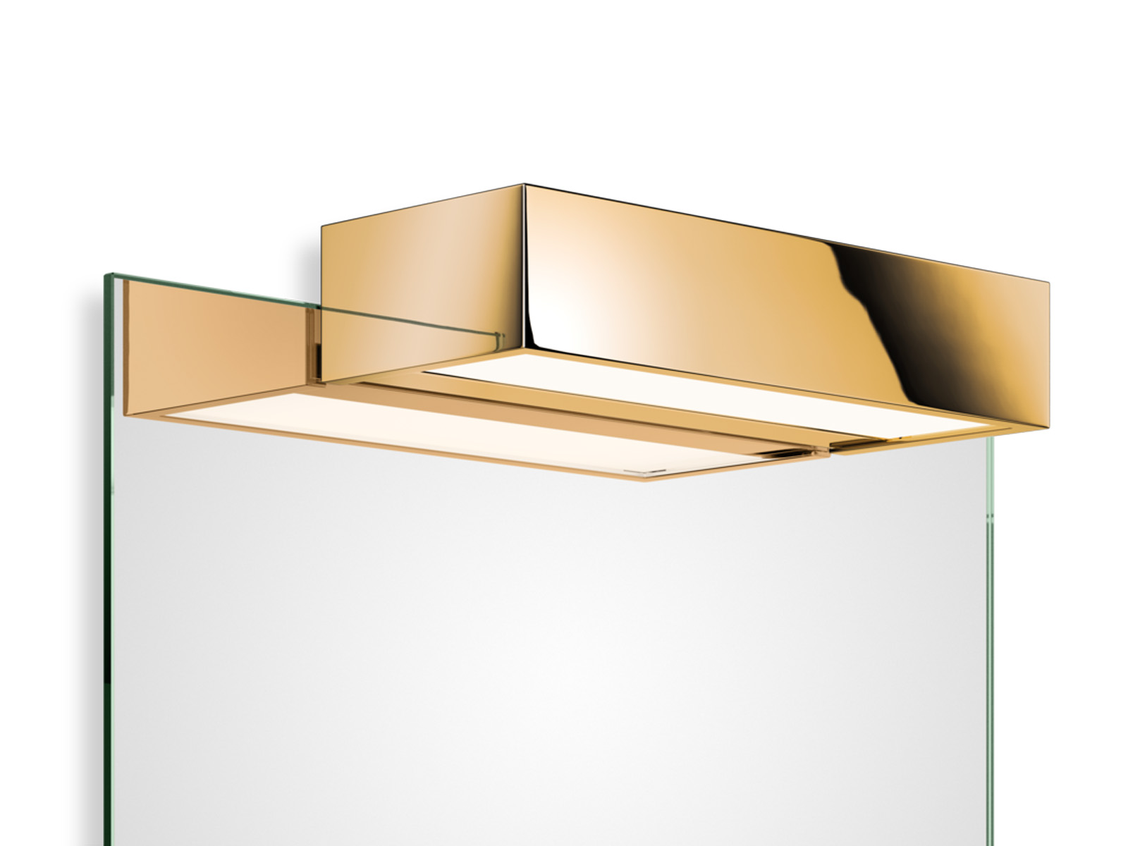 Elegancka długa lampa o prostokątnym kształcie, szeroka listwa o długości 25 cm przypinana bezinwazyjnie na górny brzeg lustra.
