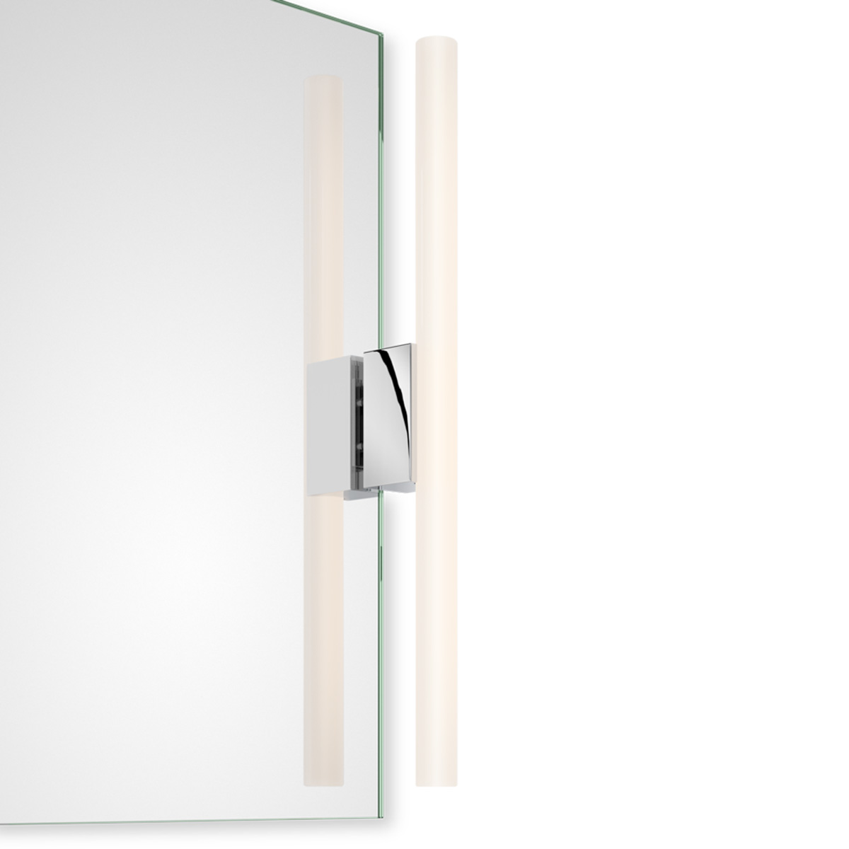 Konstrukcja lampy wykonana z wysokiej jakości chromowanego mosiądzu - lampa może być zamontowana na lustrze poziomo lub pionowo.