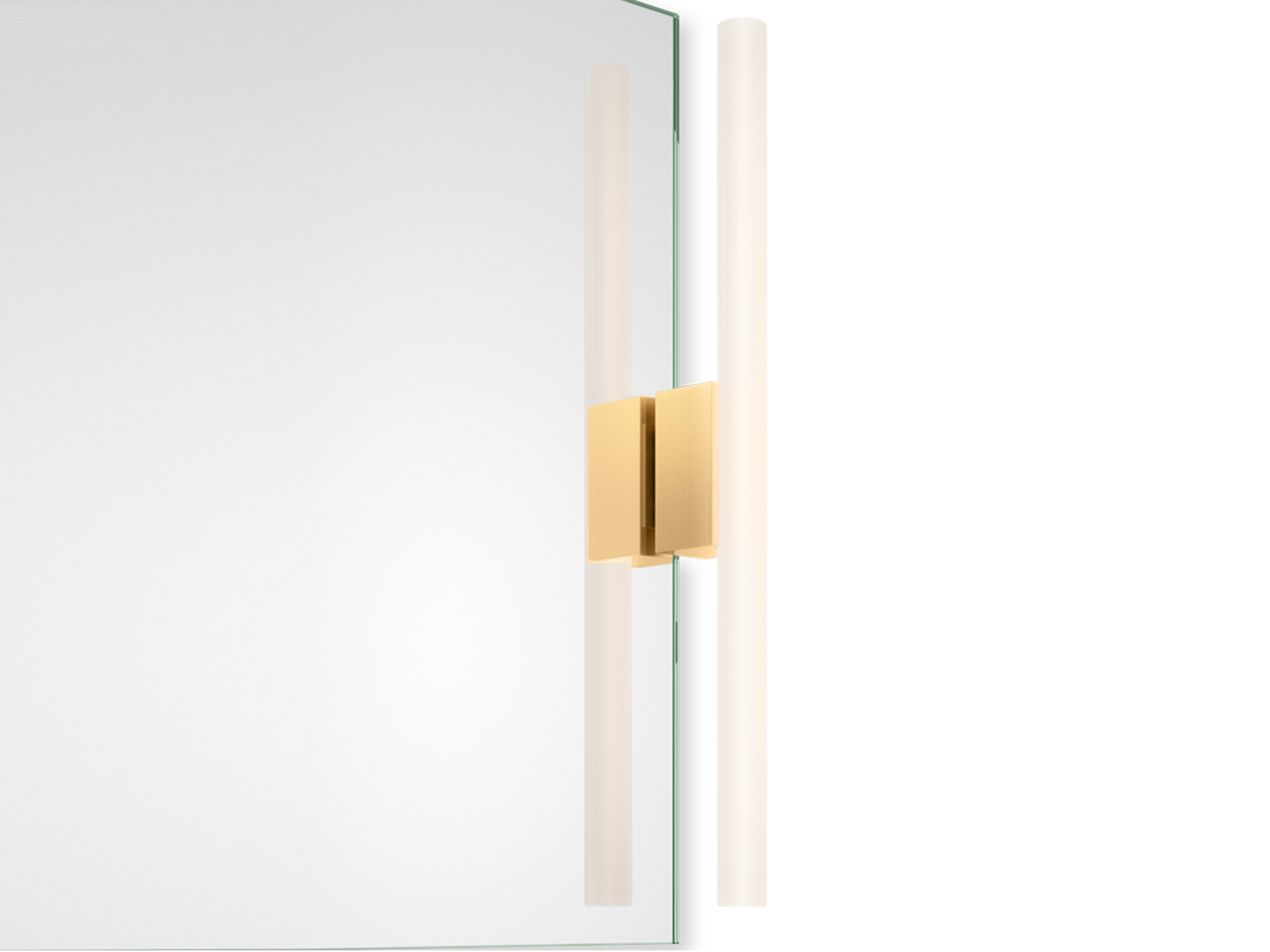 Konstrukcja lampy wykonana z wysokiej jakości pozłacanego 24-karatowym złotem mosiądzu w wykończeniu matowym - lampa może być zamontowana na lustrze poziomo lub pionowo.