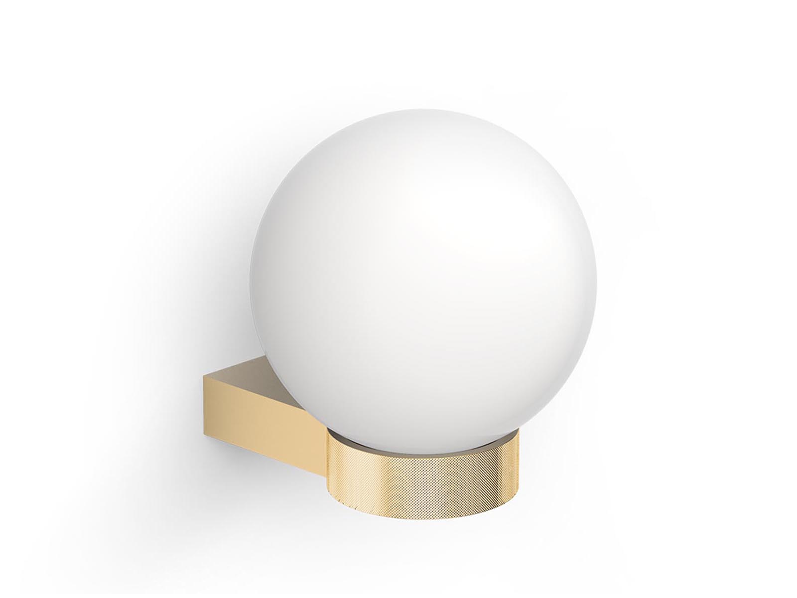 Elegancka lampa o kulistym kształcie z ozdobną podstawą mocowaną do ściany, idealna do oświetlenia zarówno łazienki, przedpokoju i salonu.