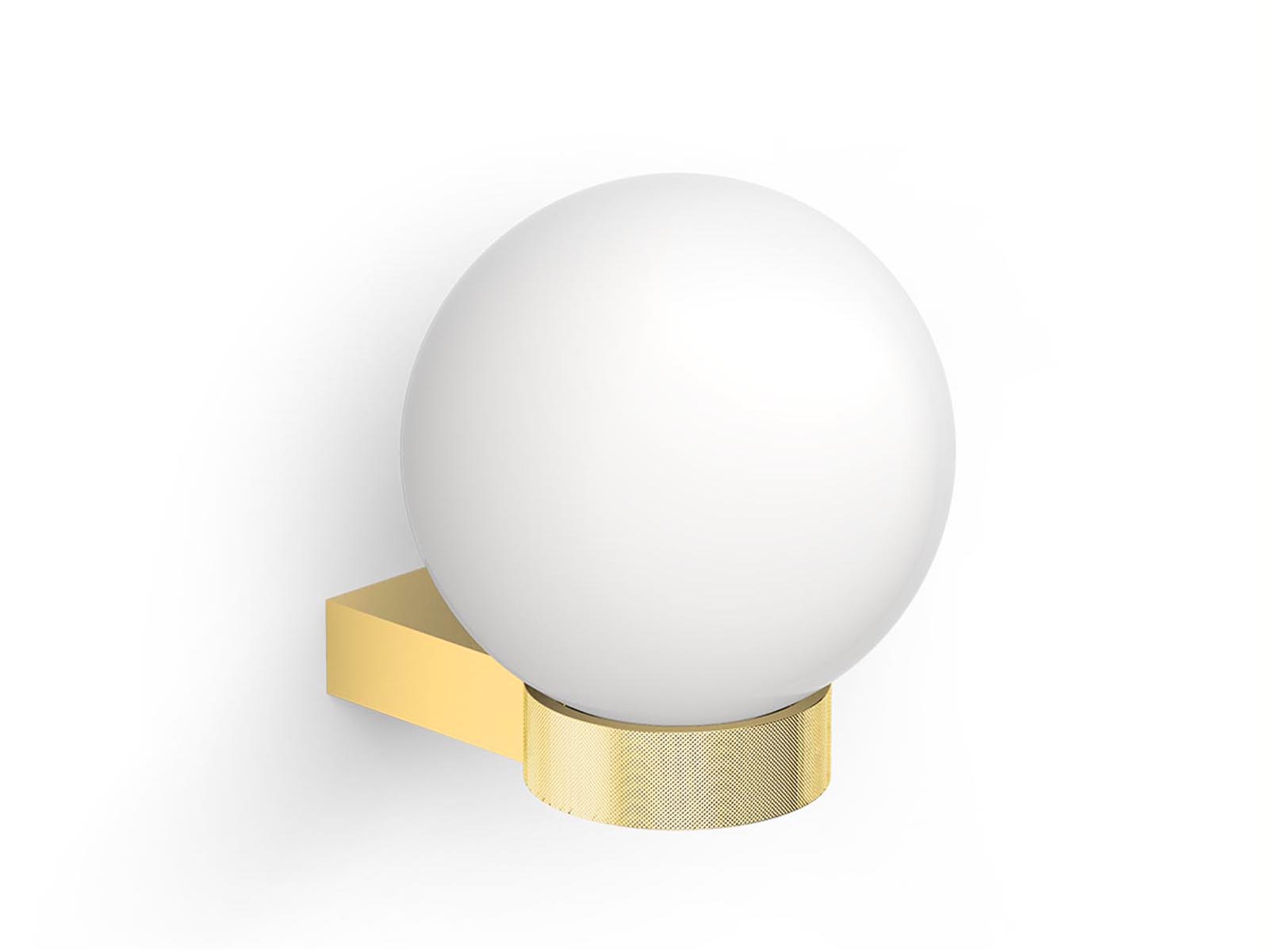 Elegancka lampa o kulistym kształcie z ozdobną podstawą mocowaną do ściany, idealna do oświetlenia zarówno łazienki, przedpokoju i salonu.