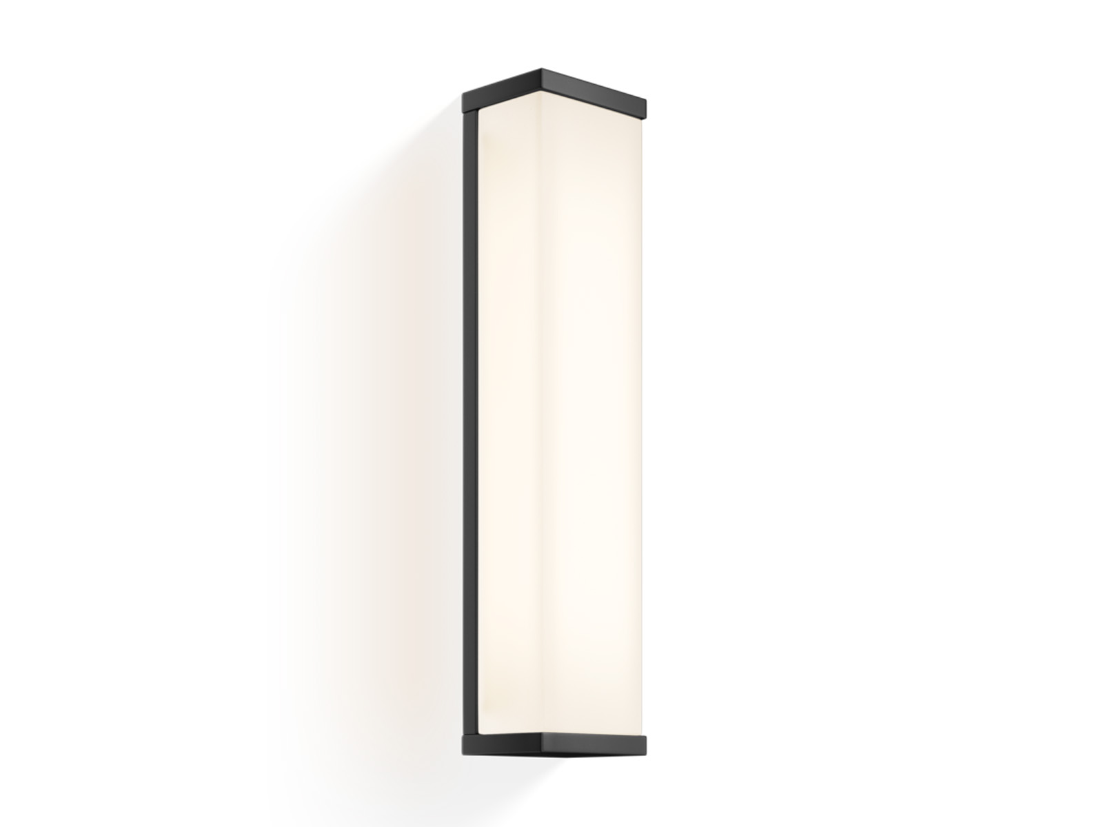 Elegancka lampa o prostokątnym kształcie mocowana do ściany, nadaje się do oświetlenia zarówno łazienki, przedpokoju i salonu.