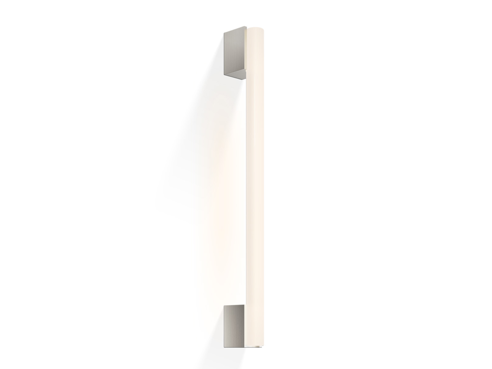 Obie części podstawy lampy w kształcie sześcianu wykonane z wysokiej jakości niklowanego mosiądzu w wykończeniu matowym - lampa może być zamontowana na ścianie poziomo lub pionowo.
