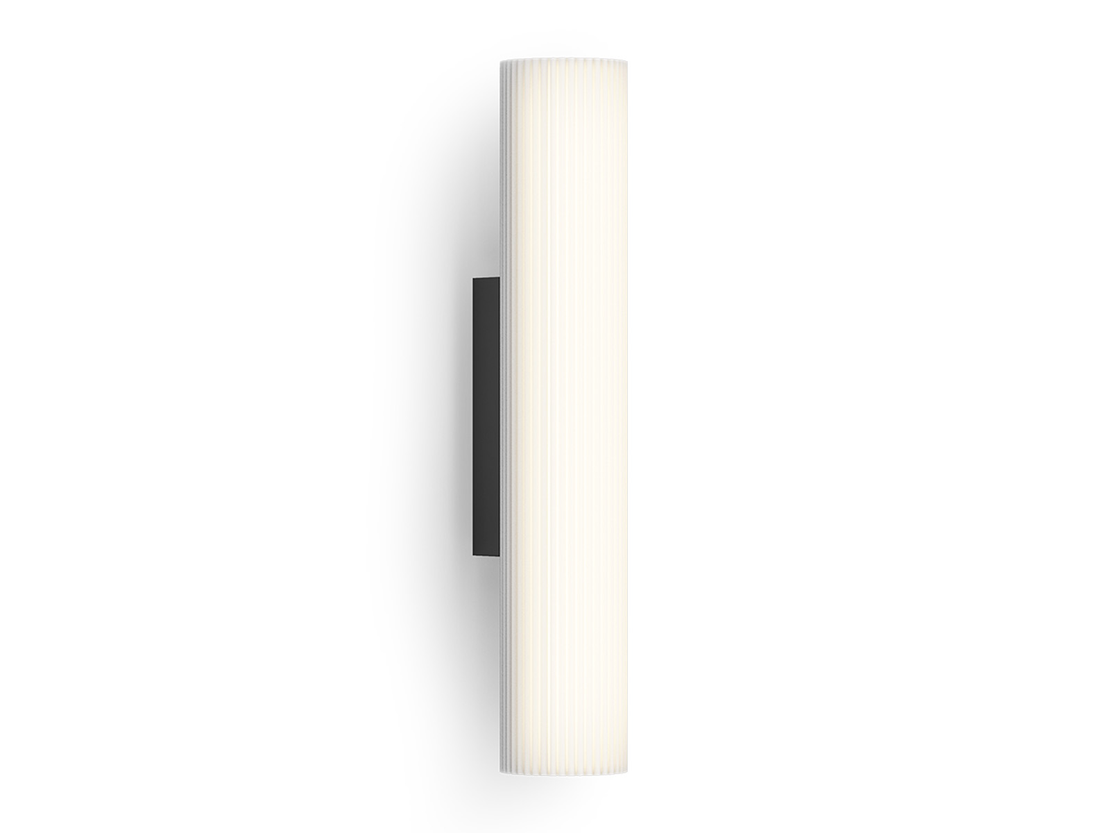 Elegancka lampa o tubalnym smukłym kształcie mocowana do ściany, nadaje się do oświetlenia przedpokoju i salonu.