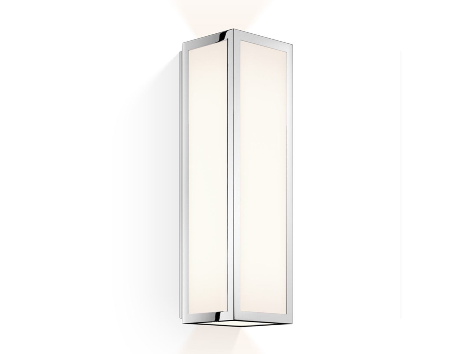 Konstrukcja lampy wykonana z wysokiej jakości chromowanego mosiądzu, wszystkie boki klosza lampy płaskie wykonane z białego błyszczącego szkła akrylowego.