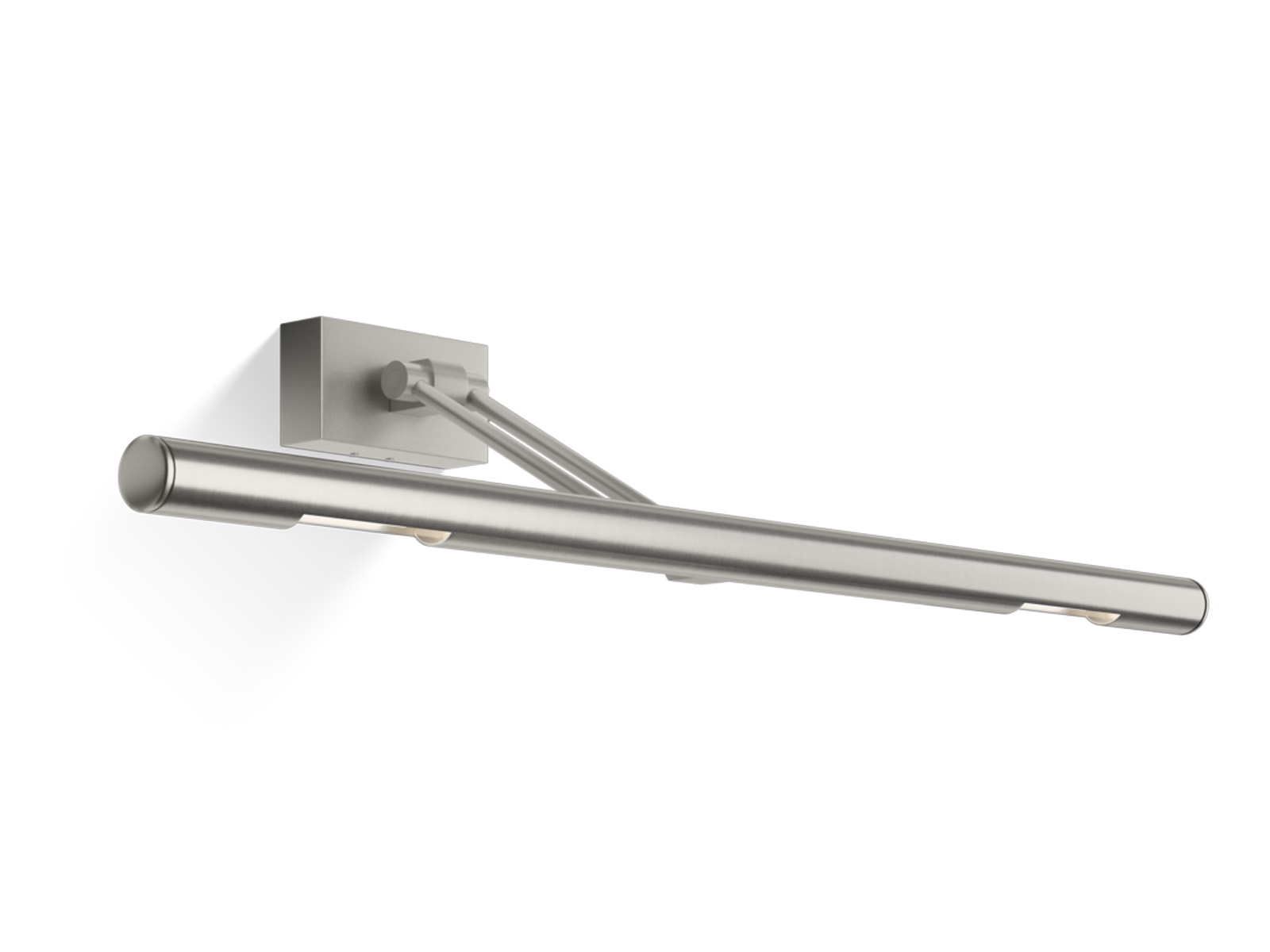 Konstrukcja lampy wykonana z wysokiej jakości niklowanego mosiądzu w wykończeniu matowym, z ruchomym ramieniem umożliwiającym ustawienie oświetlenia pod wybranym kątem.