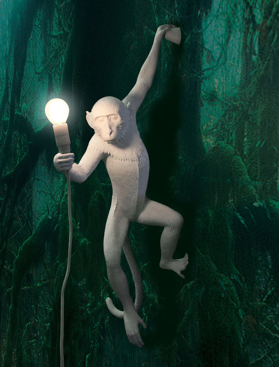 Seletti Monkey Lamps to kolekcja bardzo oryginalnych lamp w kształcie małp. Na szczególna uwagę zasługuje realizm z jakim zostały oddane zarówno szczegóły budowy małpy jak i dynamika poszczególnych postaw. Małpy trzymające żarówki są idealnie odwzorowane i sprawiają wrażenie bycia w ciągłym ruchu.