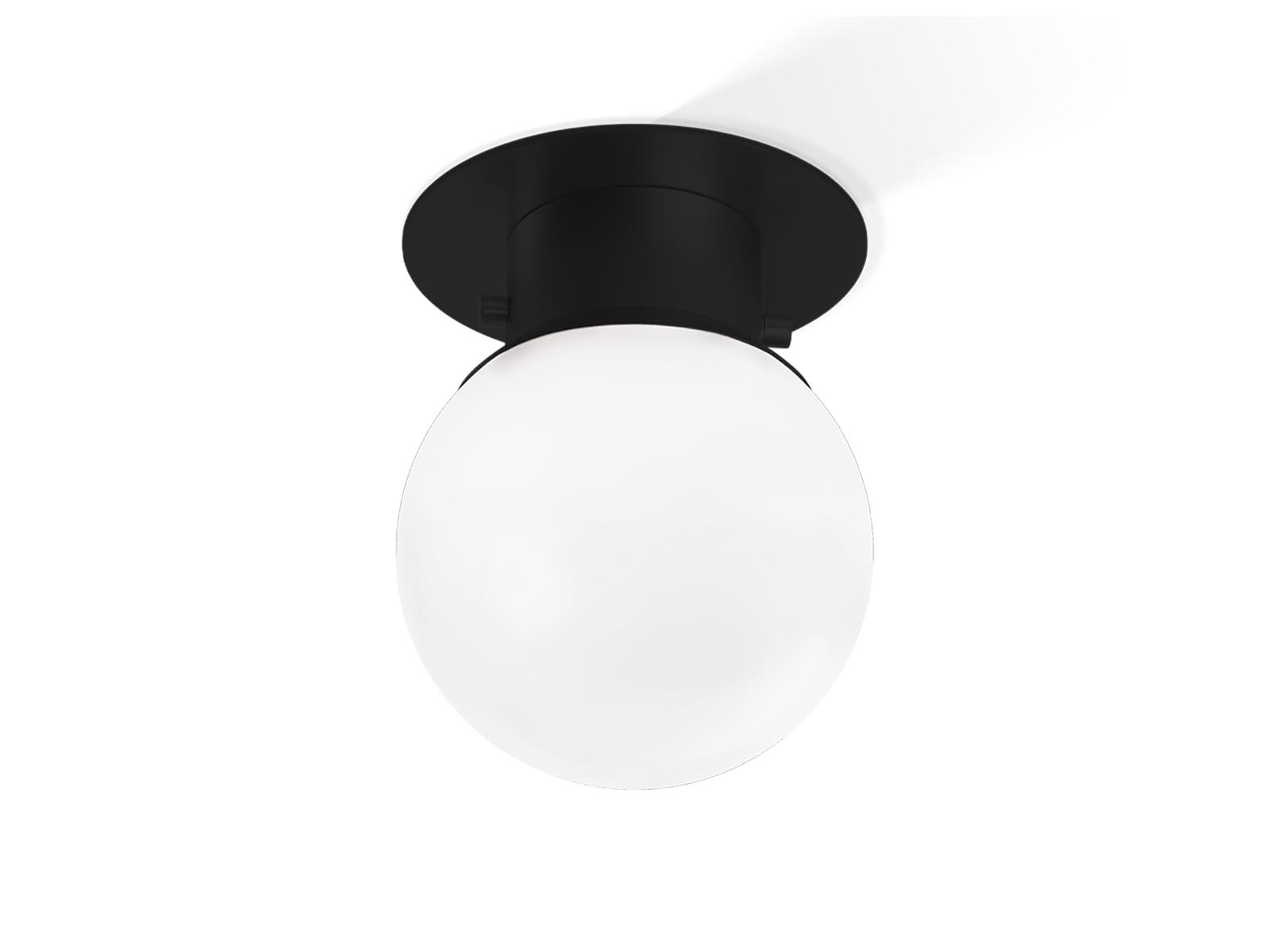 Elegancka lampa o kulistym kształcie z okrągłą podstawą mocowaną do sufitu, idealna do oświetlenia zarówno łazienki, przedpokoju jak i innych domowych pomieszczeń.
