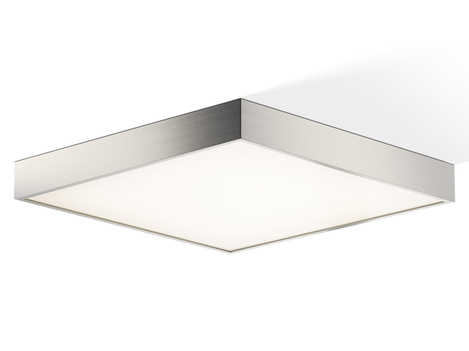 Elegancka kwadratowa lampa plafon LED 40x40 cm z podstawą mocowaną do sufitu, idealna do oświetlenia zarówno łazienki, przedpokoju jak i innych domowych pomieszczeń.