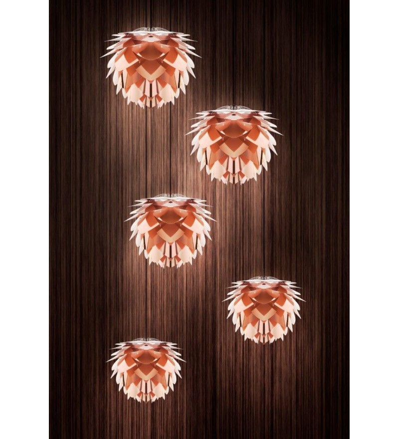 Lampa UMAGE Silvia z kolekcji Core Line to nawiązanie do klasyki duńskiego designu. Intrygująca forma, ponadczasowa linia i skandynawski charakter tworzą niepowtarzalny klimat w niejednym wnętrzu. Wersja copper w kolorze metalicznej miedzi powstała z myślą o wszystkich tych, którzy chcą wprowadzić do domu ciepłe i modne kolory. Ta wyselekcjonowana kolorystyka to także nawiązanie do najnowszych trendów w wyposażeniu wnętrz. Poszczególne listki lampy Silvia Copper wykonane są z elastycznego tworzywa, które z jednej strony pokryte jest kolorową metaliczną folią, a od strony wewnętrznej zachowuje biały kolor. Dzięki temu rozwiązaniu otrzymujemy produkt dekoracyjny, lecz dobrze rozpraszający światło.