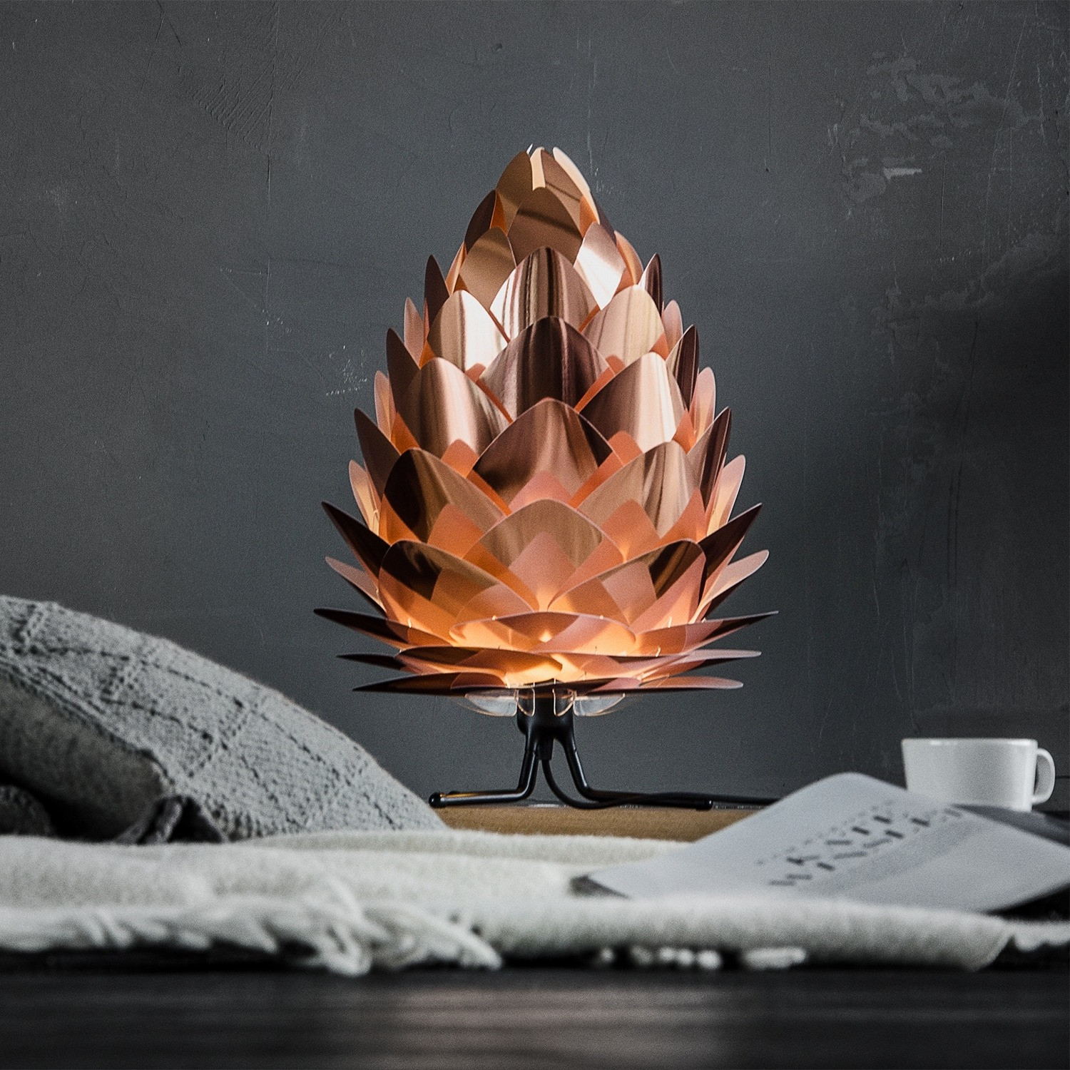 Wersja lampy w kolorze miedzianym powstała z myślą o wszystkich tych, którzy chcą wprowadzić do domu ciepłe i oryginalne kolory, nawiązujące do najnowszych trendów w wyposażeniu wnętrz.