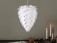 Klosz lampy wieloelementowy w stożkowatym kształcie przypominającym szyszkę o średnicy 40 cm, wykonany z tworzywa sztucznego.