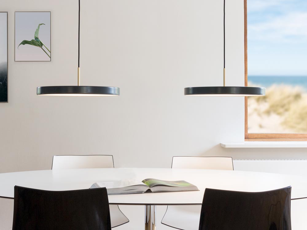Lampa Umage Asteria zaprojektowana została z prostotą i minimalizmem. Jej oszczędny w formie, płaski klosz stworzono z myślą o zastosowaniu nad stołem lub stolikiem kawowym. Zintegrowany panel LED z możliwością ściemniania oraz dyfuzor ze szkła akrylowego zapewnią komfortowe oświetlenie bez efektu oślepienia i dostosowane do Twoich potrzeb. Nie ma obawy, że lampa zasłoni także gości przy stole.