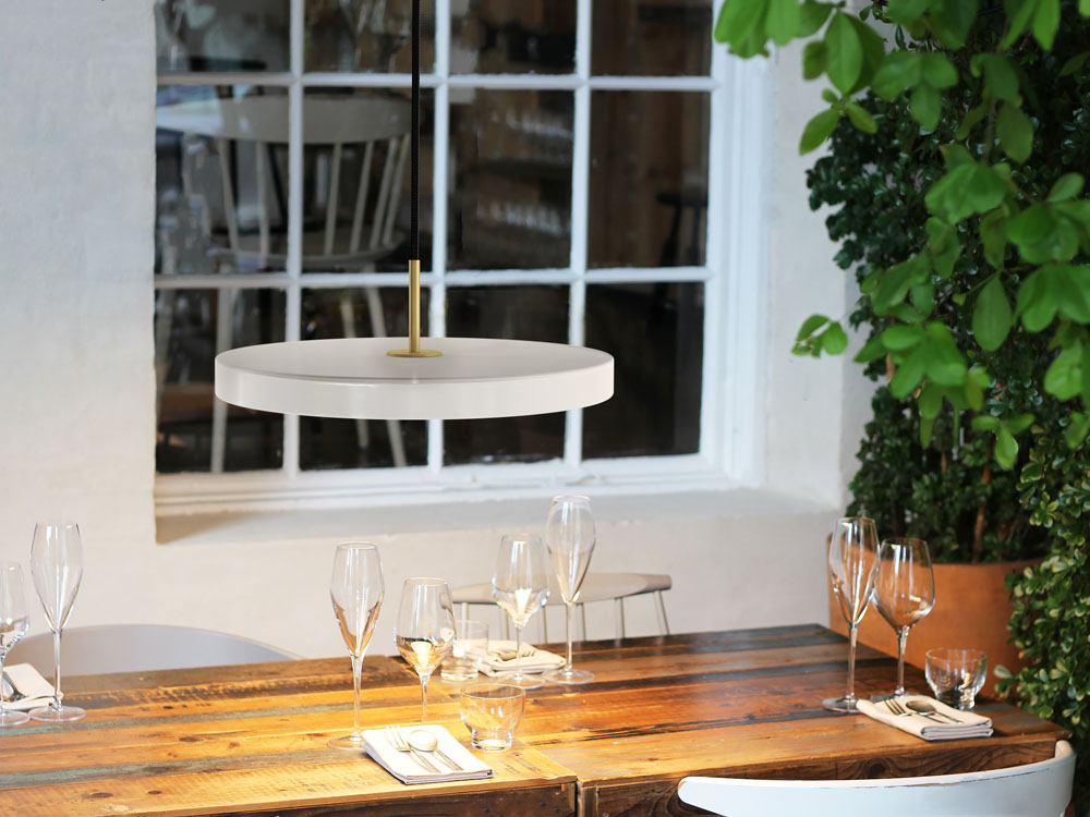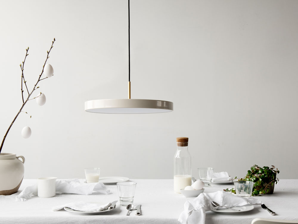 Lampa Umage Asteria zaprojektowana została z prostotą i minimalizmem. Jej oszczędny w formie, płaski klosz stworzono z myślą o zastosowaniu nad stołem lub stolikiem kawowym. Zintegrowany panel LED z możliwością ściemniania oraz dyfuzor ze szkła akrylowego zapewnią komfortowe oświetlenie bez efektu oślepienia i dostosowane do Twoich potrzeb. Nie ma obawy, że lampa zasłoni także gości przy stole.