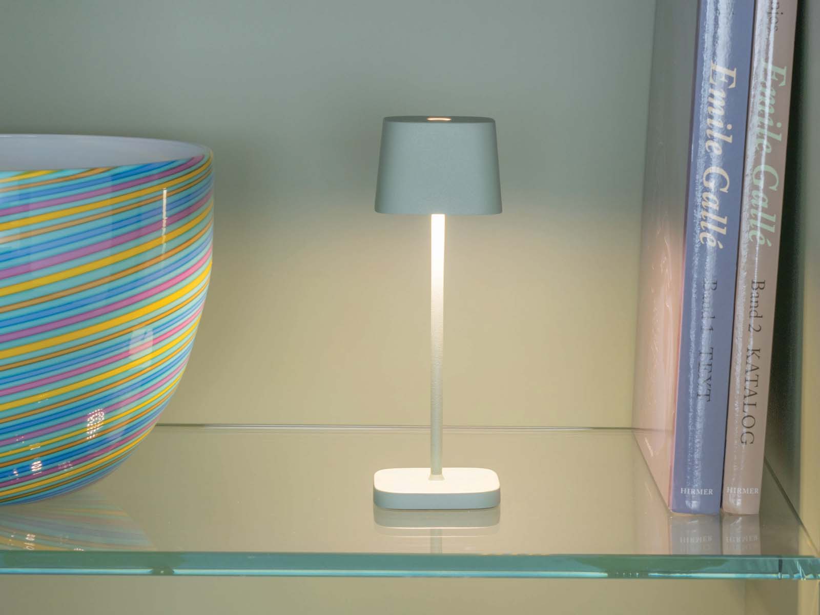 Lampa Ofelia Pro to lampa dotykowa z wbudowanym akumulatorem co zapewnia jej bezprzewodowość i niesamowitą funkcjonalność łącząc praktyczność z eleganckim, wyraźnym wzornictwem. Zastosowana w pomieszczeniach lub na zewnątrz, stanowi dynamiczną alternatywę do klasycznego oświetlania. Tworzy idealną atmosferę przy stoliku, oświetli kolację na tarasie lub romantyczny piknik. Niezależnie od lokalizacji i warunków.