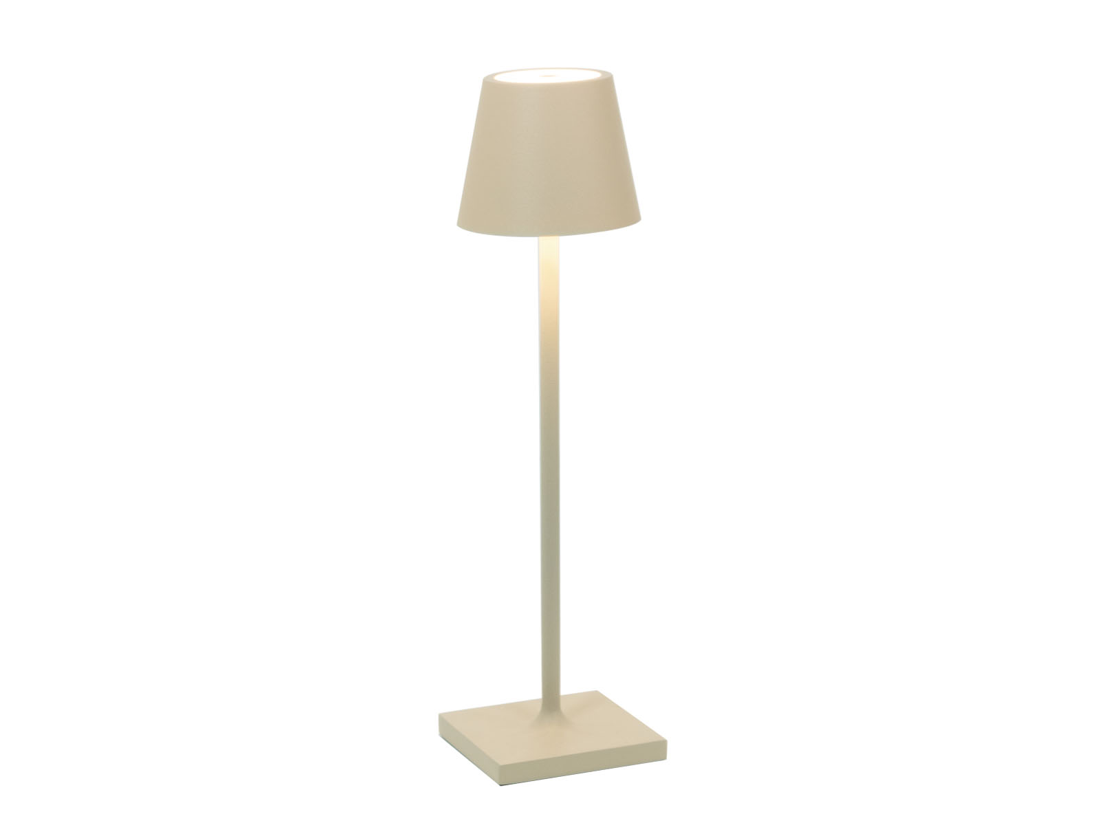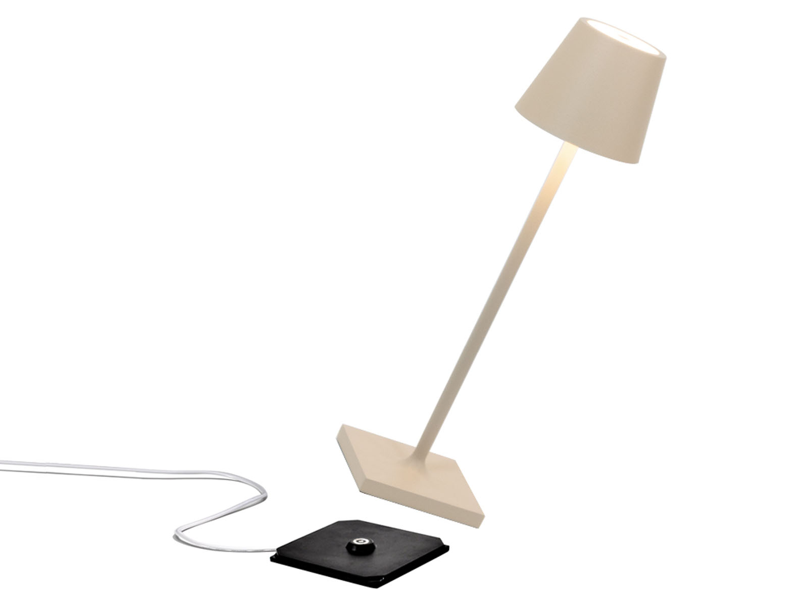 Lampa Poldina Pro to lampa dotykowa z wbudowanym akumulatorem co zapewnia jej bezprzewodowość i niesamowitą funkcjonalność łącząc praktyczność z eleganckim, wyraźnym wzornictwem. Zastosowana w pomieszczeniach lub na zewnątrz, stanowi dynamiczną alternatywę do klasycznego oświetlania. Tworzy idealną atmosferę przy stoliku, oświetli kolację na tarasie lub romantyczny piknik. Niezależnie od lokalizacji i warunków.