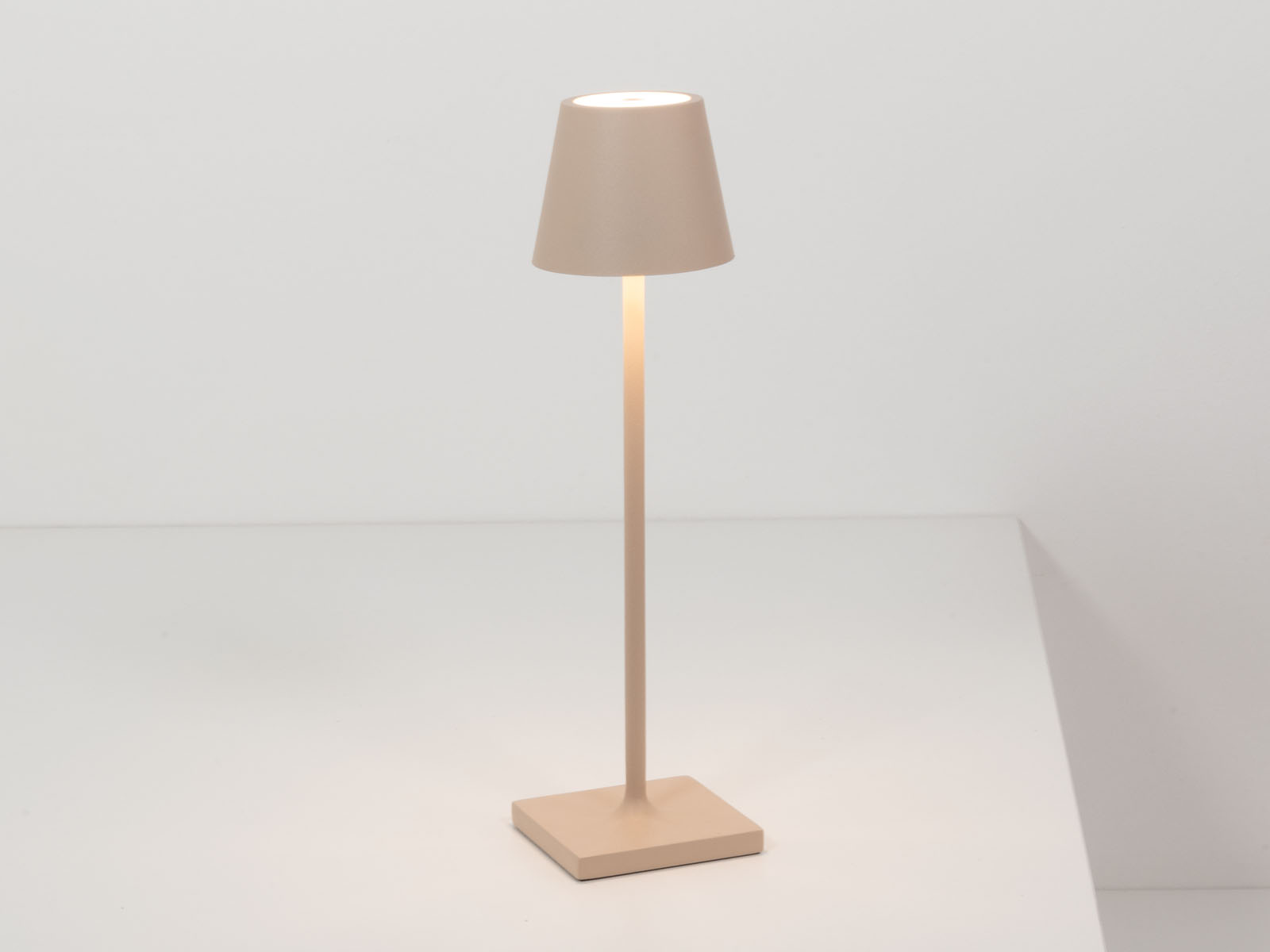 Zafferano Poldina Pro to wyjątkowa kolekcja uniwersalnych bezprzewodowych lamp ledowych. Stylistycznie lampa Poldina zadziwia swoim prostym, a jednocześnie oryginalnym projektem, dla którego inspiracją stała się najprostsza klasyczna lampa stojąca i jej prosty stożkowy abażur.