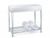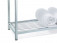 Ławka posiada lekką ażurową półkę do przechowywania ręczników lub innych akcesoriów łazienkowych.