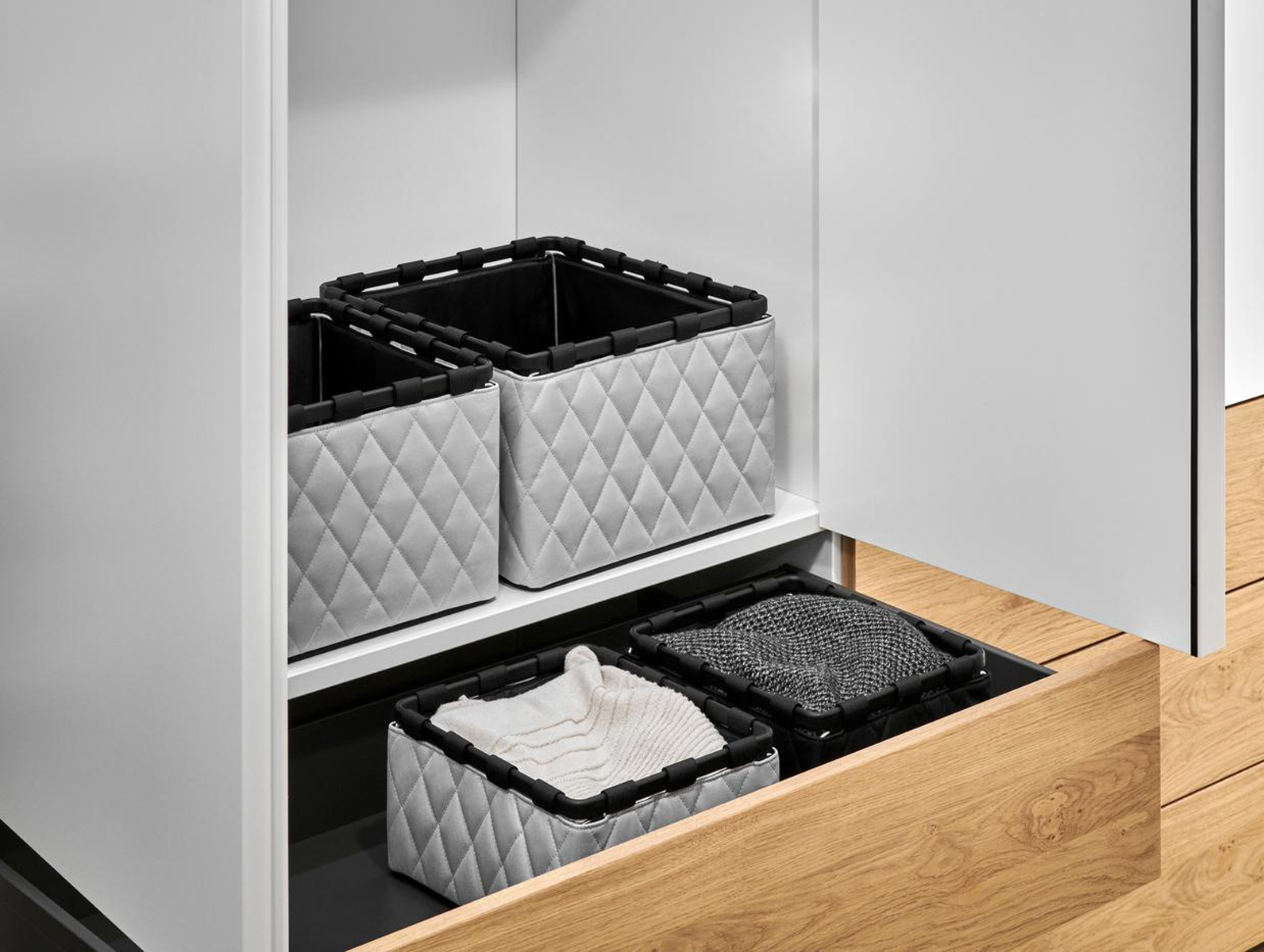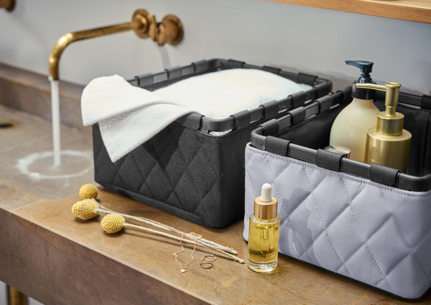 Uniwersalne pudła Framebox pomagają w codziennym układaniu akcesoriów łazienkowych, dodatków do garderoby, bielizny, dekoracji, dokumentów oraz artykułów biurowych. Co ważne, pasują stylistycznie do pudeł z kolekcji Storagebox tej samej marki.