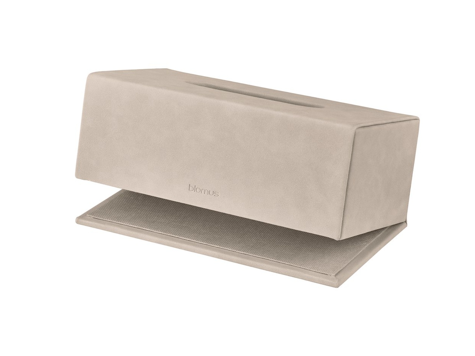 Pokrycie ze skóry syntetycznej, a także praktyczne przegródki, otwory i przekładki decydują o wyjątkowości akcesoriów Blomus Sahla.