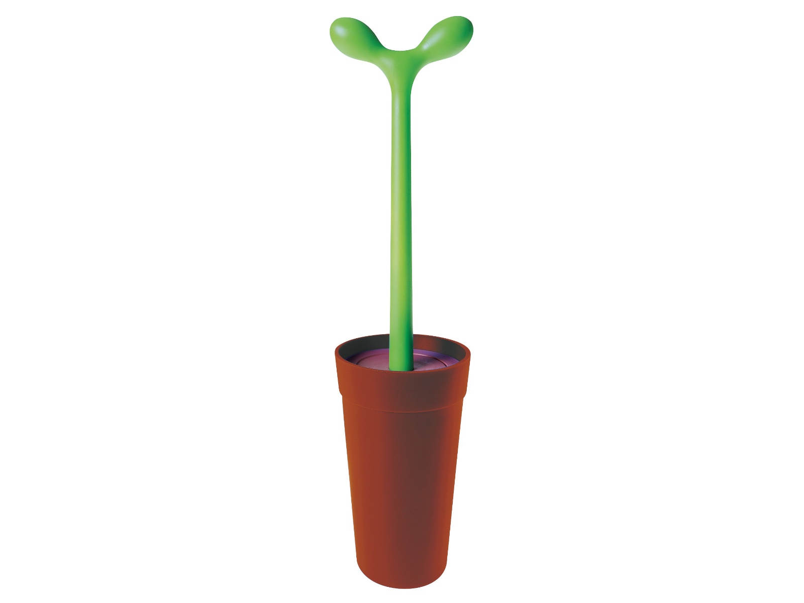 Merdolino to jeden z najbardziej udanych przykładów żartobliwego wzornictwa, charakterystycznego dla projektów Stefano Giovannoniego z lat 90. Projektant przemienił dobrze wszystkim znany, a jednocześnie „zakazany” przedmiot – szczotkę toaletową – w smukłą doniczkę z wysokim, pięknym krzewem. Innymi słowy, coś skażonego i niewartego uwagi przeobraził w przedmiot o intrygującej formie, inspirowanej Matką Naturą.