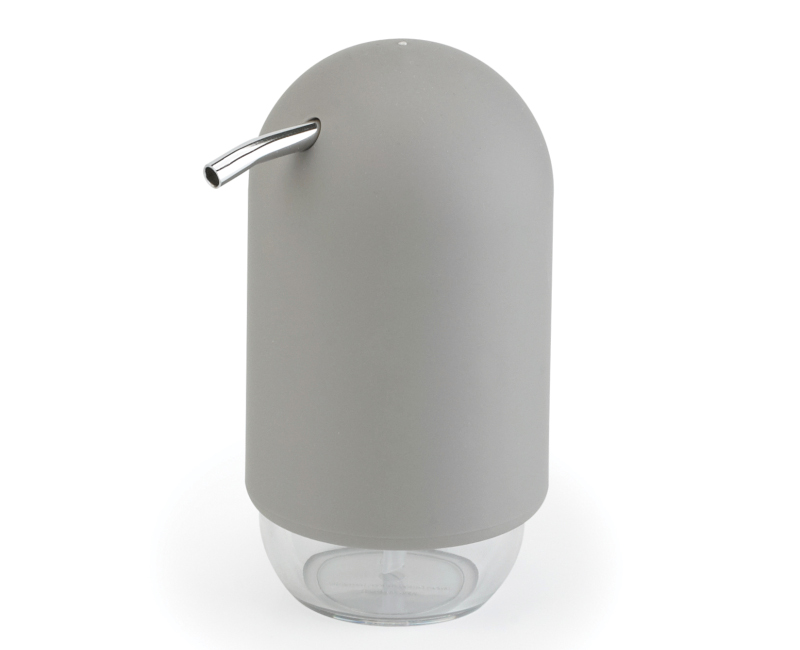 Oryginalny dozownik do mydła z przezroczystą podstawą i "miękkiego w dotyku" tworzywa.