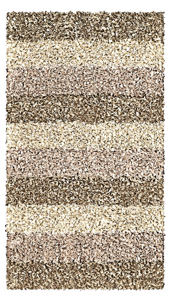 Dywaniki Lounge są wykonane z mieszanki poliestrowo-bawełnianej. Wzór Lounge to kompozycja poprzecznych pasów w 3 odcieniach koloru. Bazę dywanika stanowią charakterystyczne "wiórki" z delikatnym połyskiem.