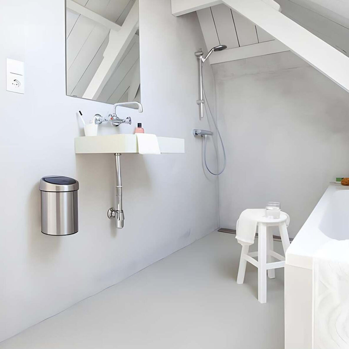 Funkcjonalny mały wolnostojący kosz na śmieci otwierany dotykowo o pojemności 3 litrów z możliwością montażu na ścianie.