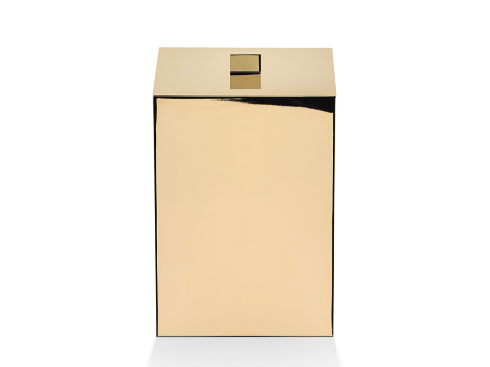 Elegancki zamykany kwadratowy kosz na śmieci wykonany ręcznie z wysokiej jakości pozłacanego 24-karatowym złotem mosiądzu w wykończeniu matowym.