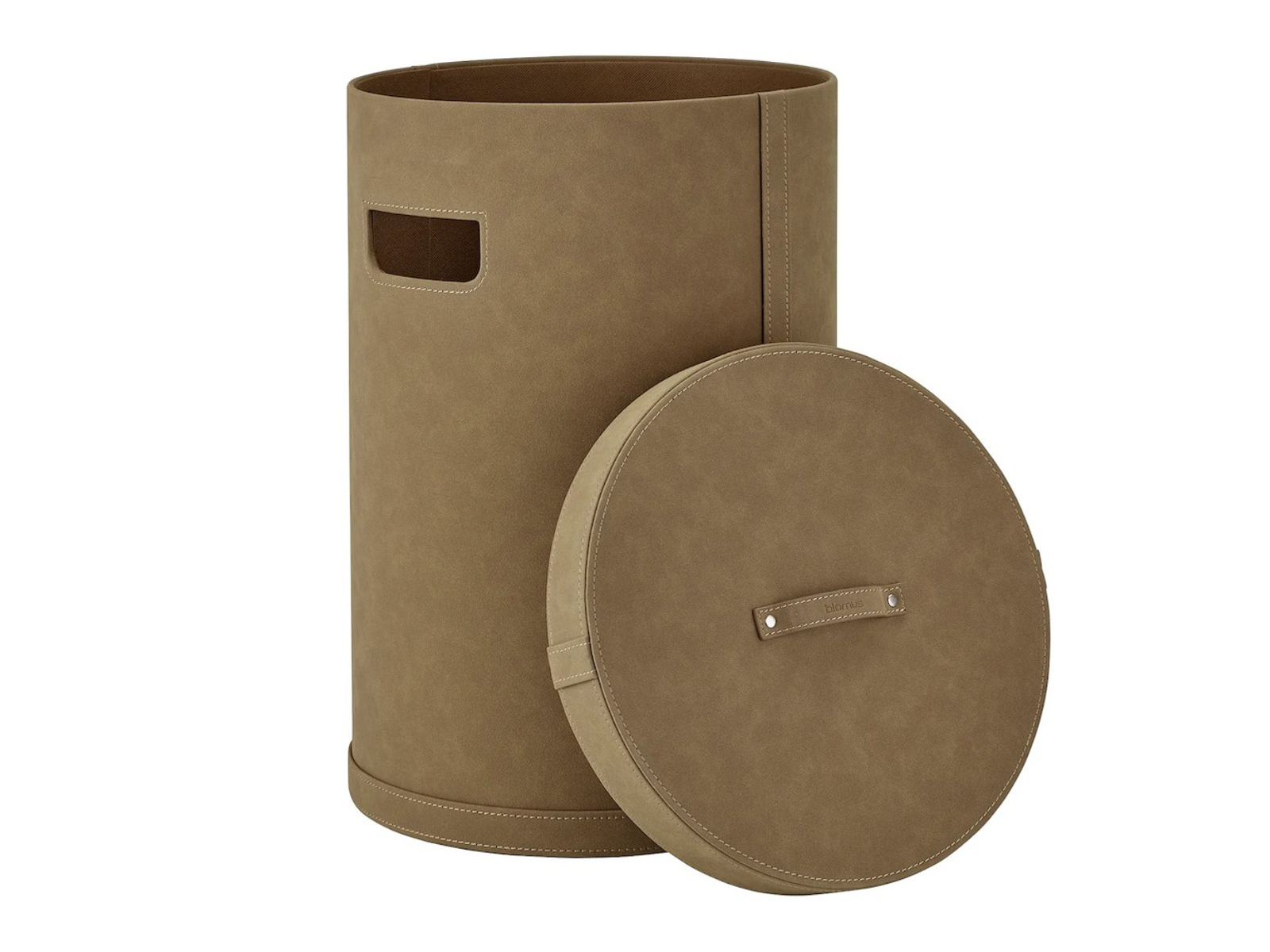 Seria koszy na pranie z kolekcji Sahla łączy prostą formę z estetycznym wykończeniem i funkcjonalnym zastosowaniem. Cylindryczny kształt oraz miękka, skórzana powierzchnia imitująca zamsz nadają całości zarówno elegancki, jak i uporządkowany charakter. Każdy kosz wyposażony jest w dopasowaną pokrywę z uchwytem, która chroni pranie i dyskretnie je ukrywa. Różne rozmiary i kolory pozwalają na idealne dopasowanie do stylu sypialni, łazienki lub garderoby.