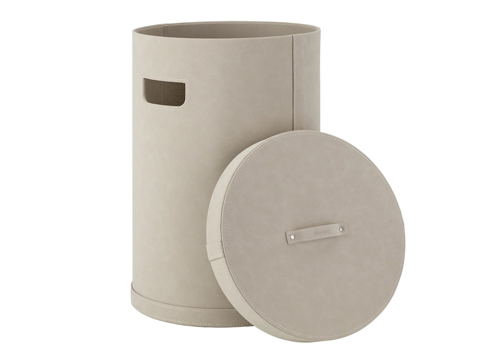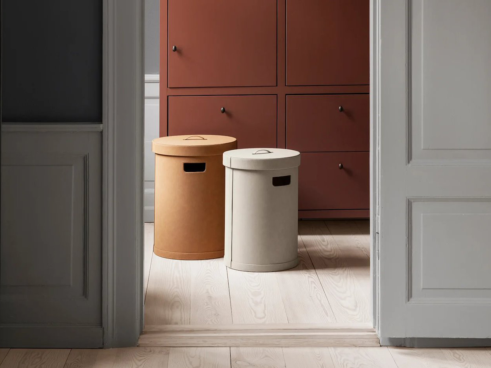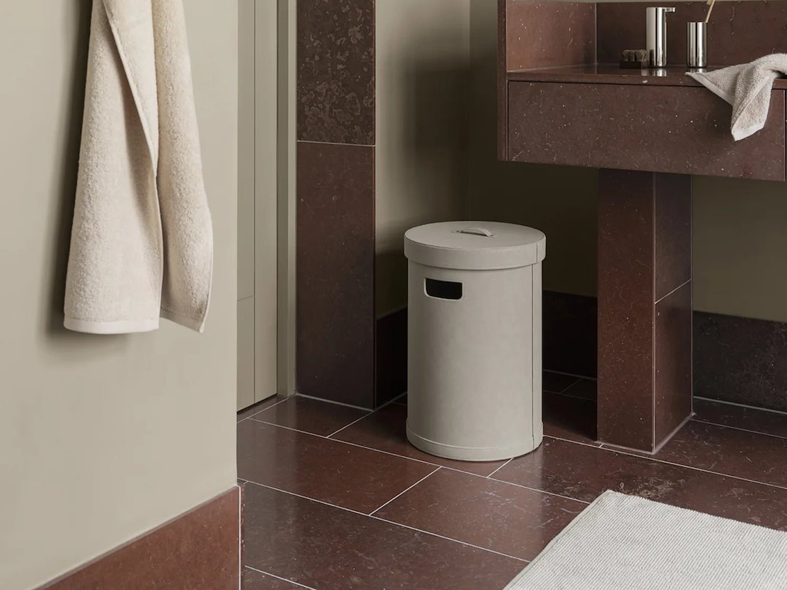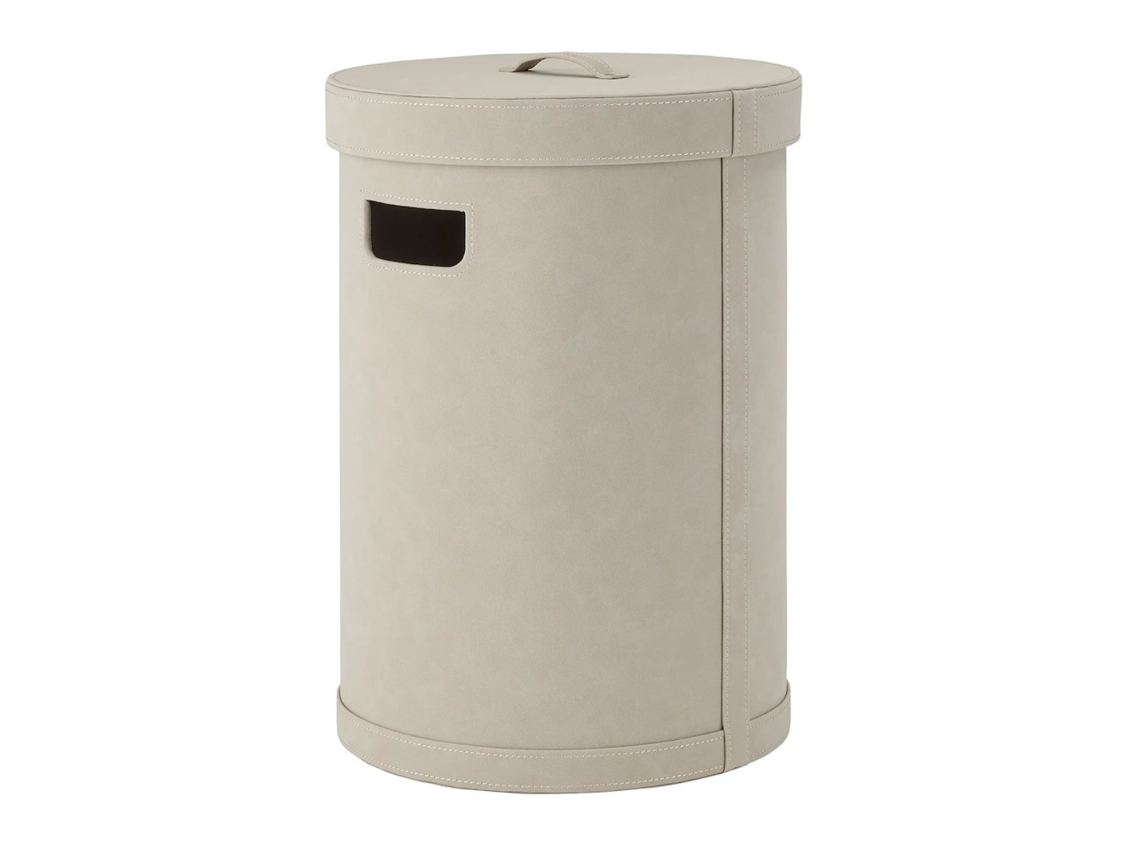 Seria koszy na pranie z kolekcji Sahla łączy prostą formę z estetycznym wykończeniem i funkcjonalnym zastosowaniem. Cylindryczny kształt oraz miękka, skórzana powierzchnia imitująca zamsz nadają całości zarówno elegancki, jak i uporządkowany charakter. Każdy kosz wyposażony jest w dopasowaną pokrywę z uchwytem, która chroni pranie i dyskretnie je ukrywa. Różne rozmiary i kolory pozwalają na idealne dopasowanie do stylu sypialni, łazienki lub garderoby.