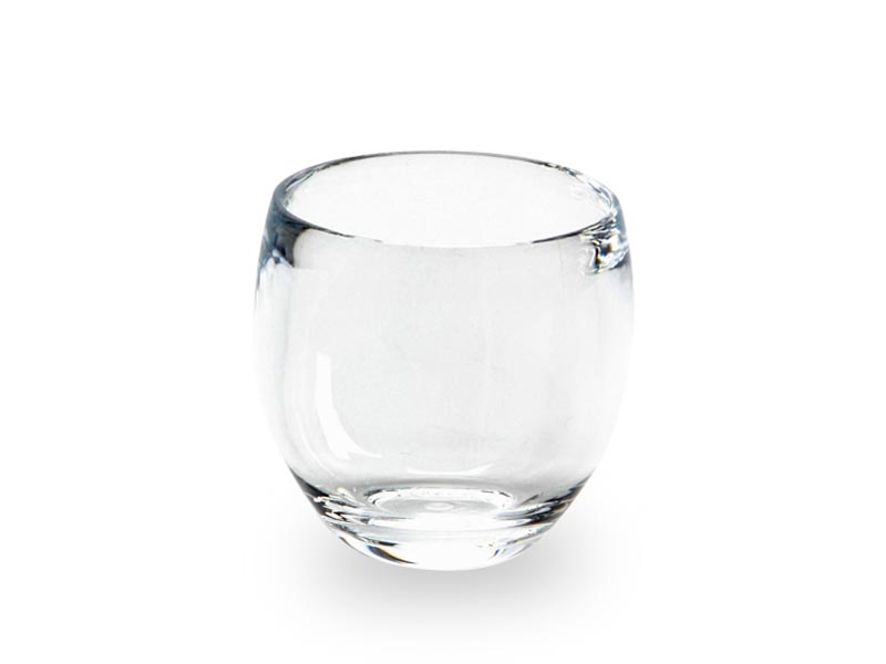 Elegancki okrągły kubeczek z przezroczystego "ciężkiego" akrylu imitującego szkło.
