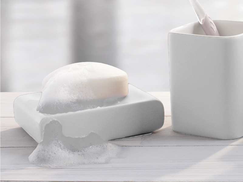 Kolekcja Cubic to ceramiczne akcesoria w charakterystycznym kształcie opartym na planie kwadratu z zaokrąglonymi krawędziami.