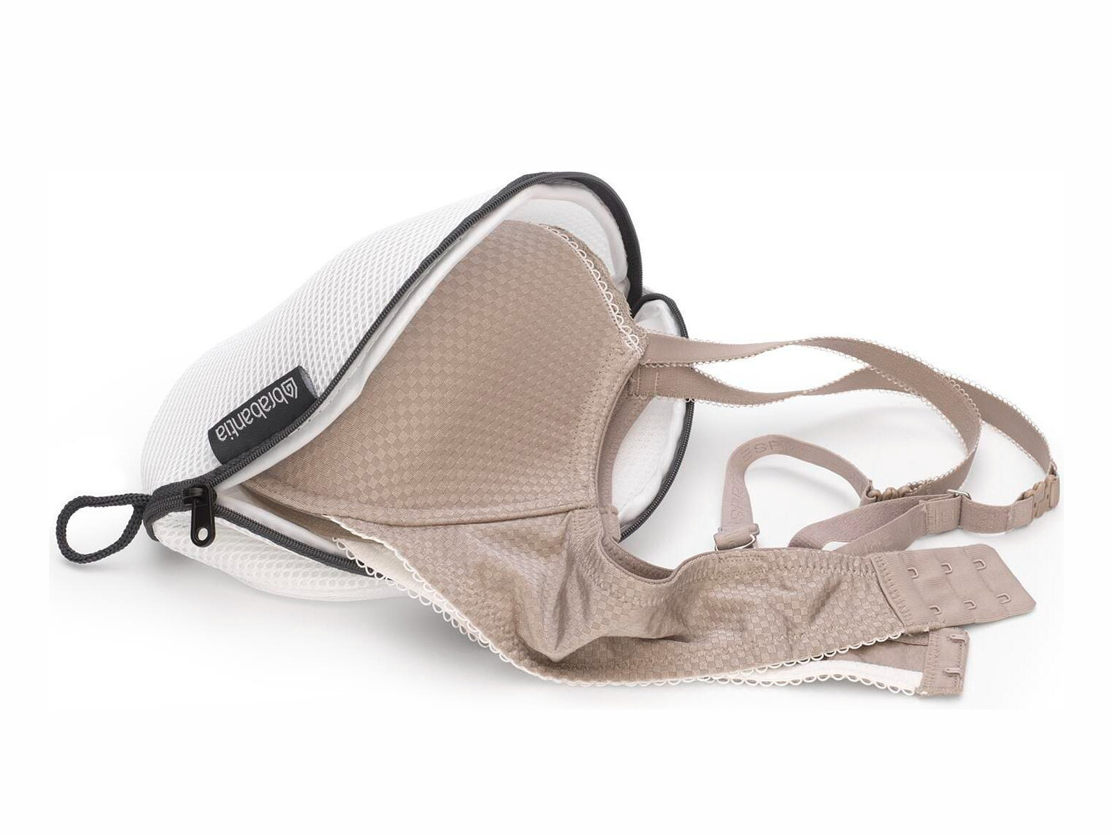 Praktyczna torebka z siatki chroniąca biustonosz podczas prania, płukania i wirowania w pralce.