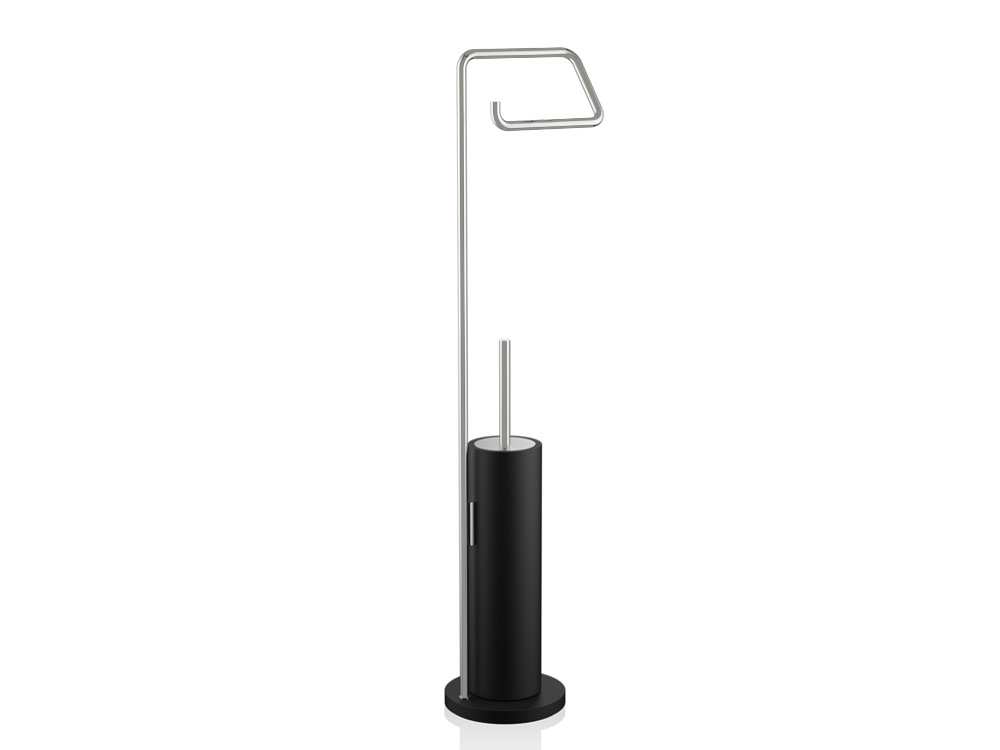Elegancki podłogowy wolnostojący stojak na papier toaletowy i szczotkę do toalety.