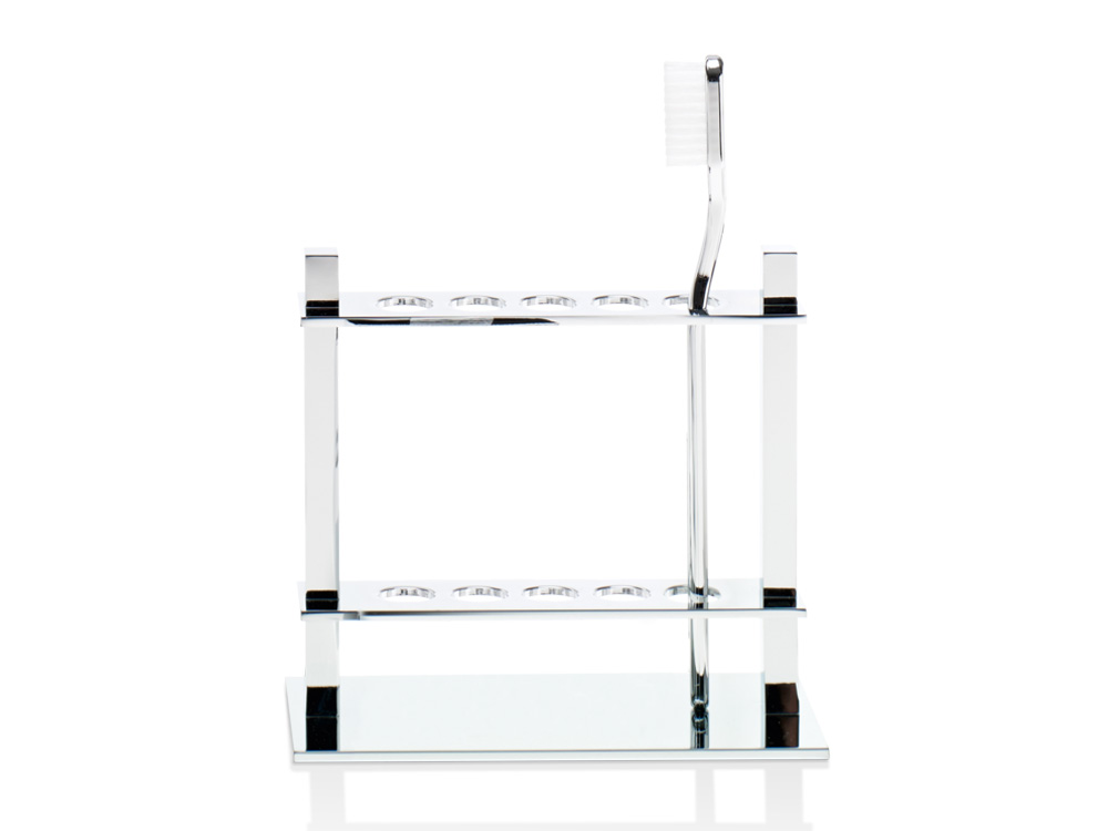 Elegancki łazienkowy stojak na szczoteczki do zębów wykonany z wysokiej jakości chromowanego mosiądzu.