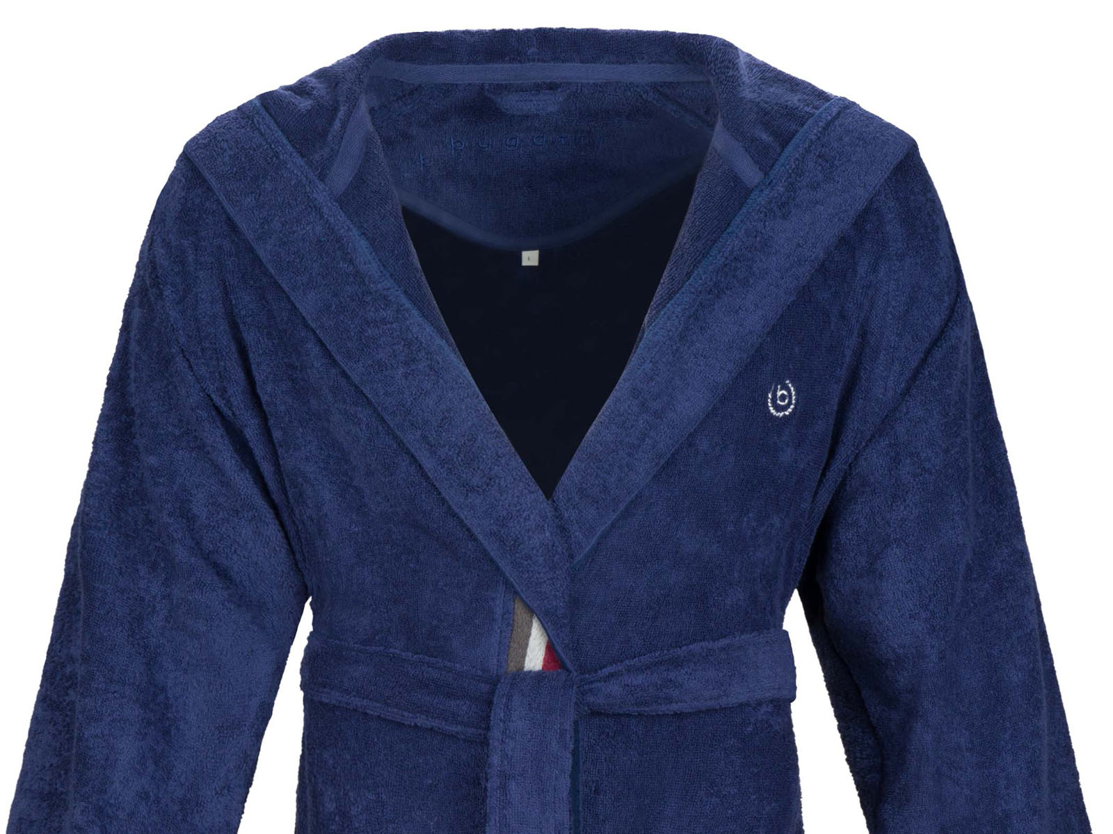 Bugatti Decimo to bardzo elegancki nowoczesny męski szlafrok frotte z kapturem. Jest niezwykle miękki i mięsisty w dotyku. Szlafrok posiada wygodny kaptur, pasek i kieszenie. Wykończony jest piękną satynową lamówką, która nadaje szlafrokowi subtelnego sportowego charakteru.
