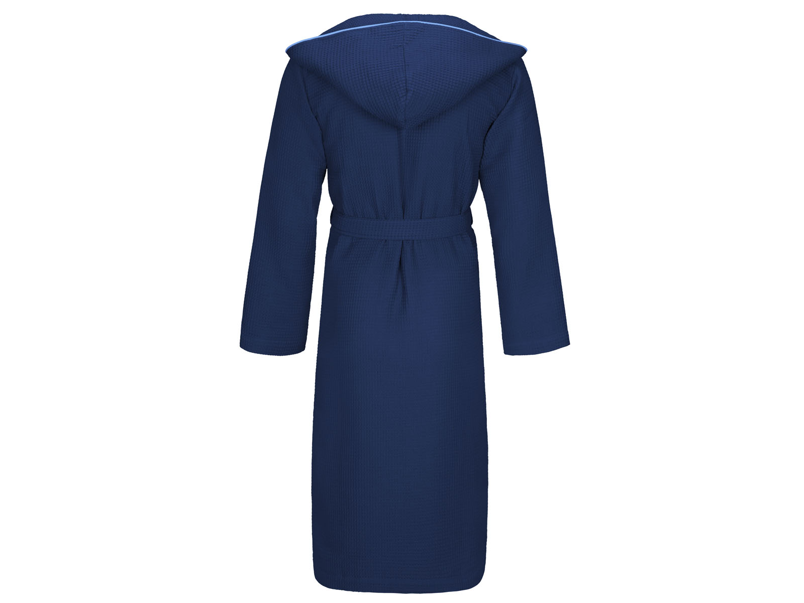 Bugatti Tizian to bardzo elegancki nowoczesny gofrowany męski szlafrok frotte z kapturem. Jest niezwykle miękki i delikatny w dotyku. Szlafrok posiada wygodny kaptur, pasek i kieszenie. Wykończony jest subtelną lamówką, co przełamuje monotonię i nadaje szlafrokowi szlachetnego charakteru.