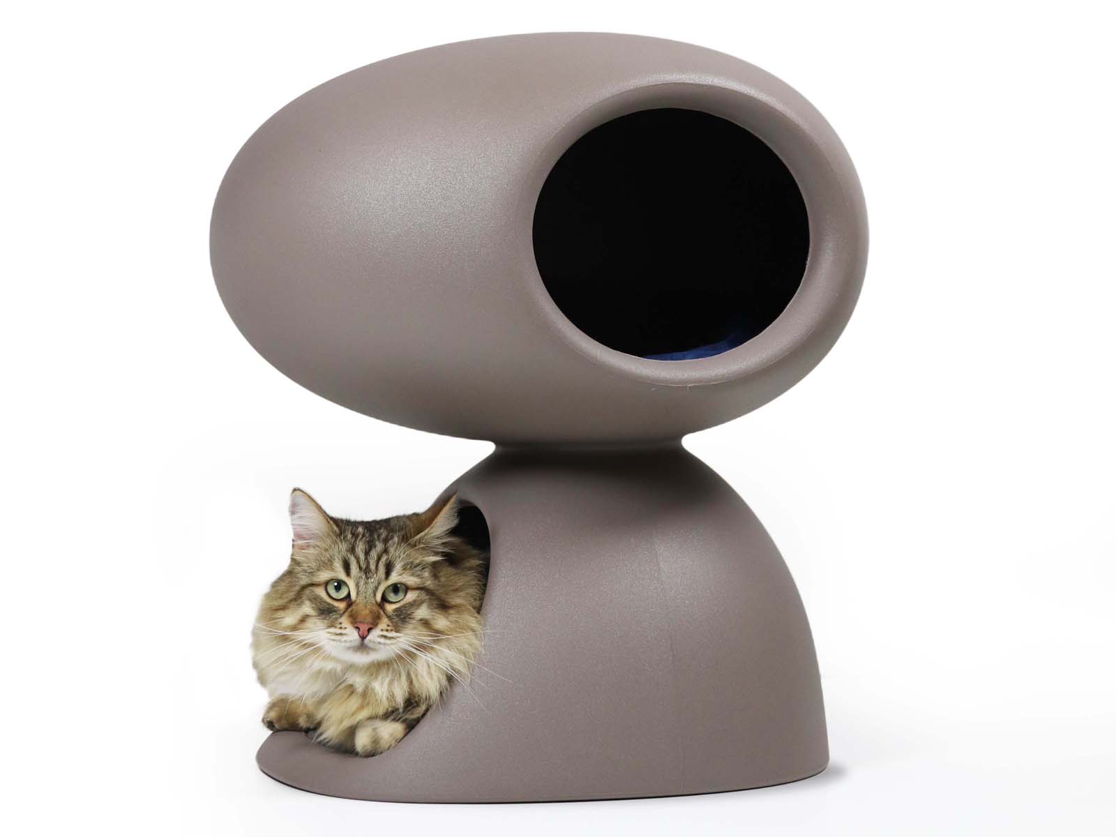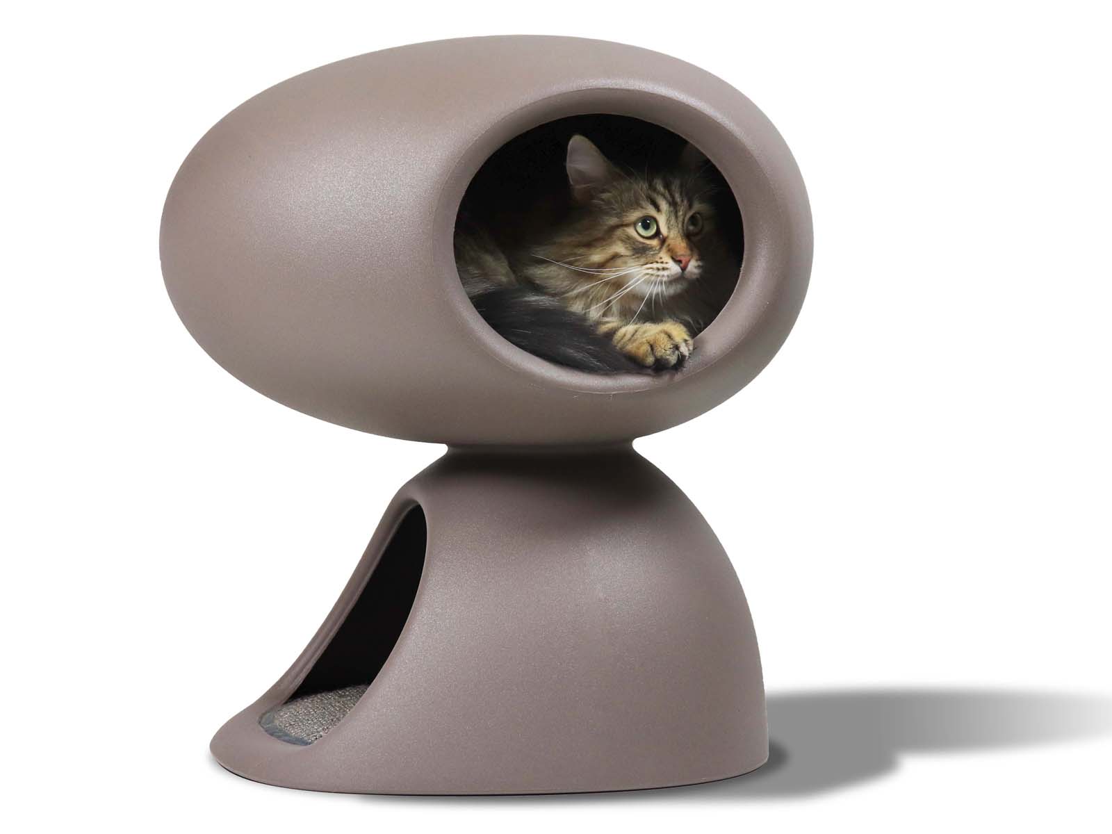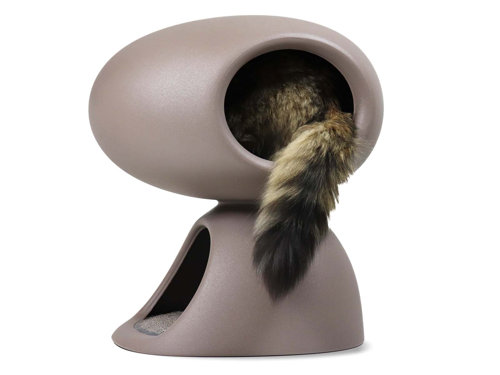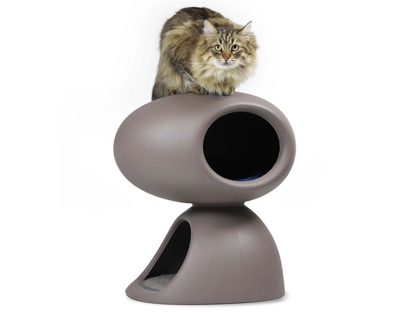 United Pets Cat Cave to oryginalne i bardzo praktyczne legowiska kota, a wręcz kocia jaskinia. Jest to projekt Stefano Giovannoniego będący wspólnym przedsięwzięciem United Pets i Qeeboo, marki pop-designu. Kocia Jaskinia jest w pełni umeblowaną oazą dla kota - górna część to idealne miejsce do obserwacji otaczającego środowiska, ale dzięki miękkiej poduszce nadaje się również do chwil relaksu. Dolna cześć przeznaczona jest do zabawy kota z drapakiem wykonanym z sizalu i wiszącą pluszową zabawką.