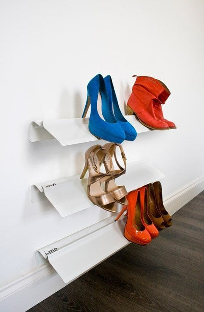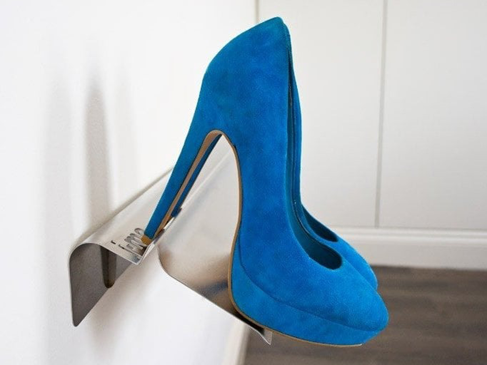 Praktyczna ścienna półka z prostym, a zarazem niezwykle praktycznym rozwiązaniem na podręczne przechowywanie butów.
