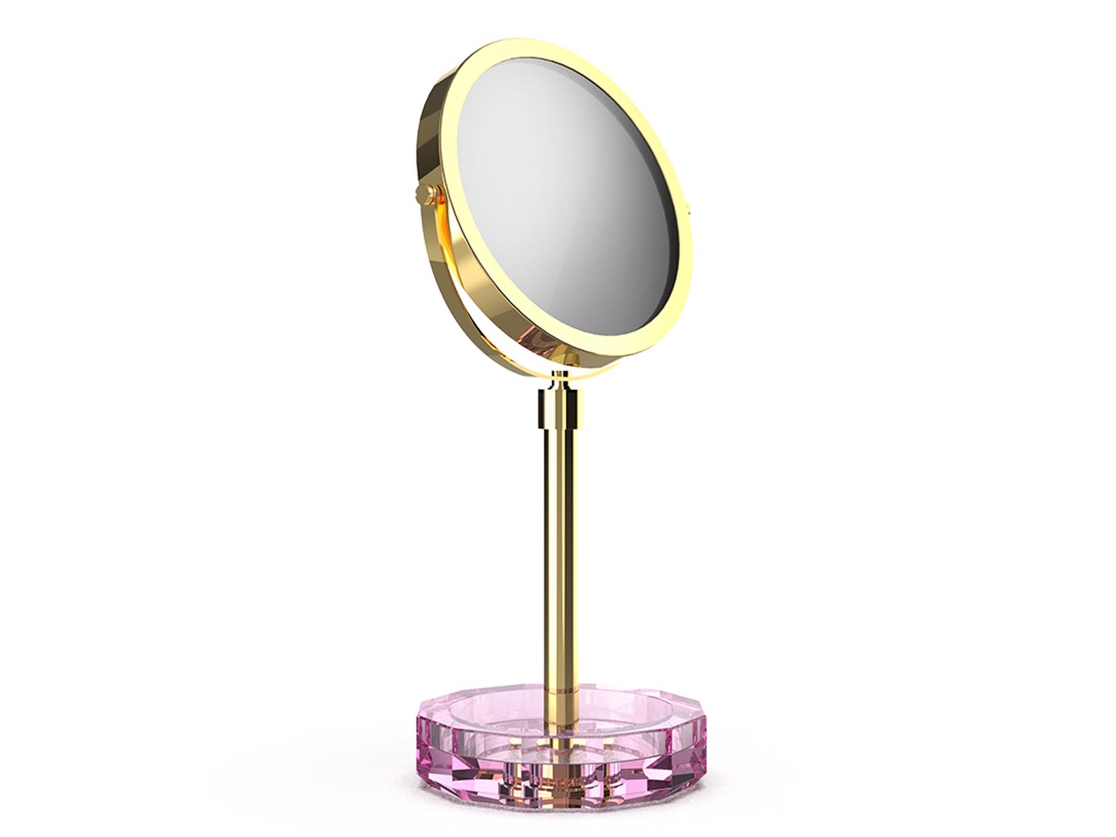 Konstrukcja lusterka wykonana z wysokiej jakości pozłacanego 24-karatowym złotem mosiądzu z nóżką osadzoną na okrągłej podstawie wykonanej z barwionego szkła kryształowego o pięknym połysku.