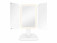 Lusterko kosmetyczne ADE to wyjątkowy, składany model z 3 częściami, idealny do codziennego makijażu i pielęgnacji. Główna tafla oraz prawe skrzydło odbijają obraz w skali 1:1, umożliwiając obserwację z dwóch kątów jednocześnie. Lewe skrzydło oferuje podwójne i potrójne powiększenie, co ułatwia precyzyjną pracę nad detalami twarzy. Konstrukcja umożliwia przechylenie lustra w zakresie 180°, a jego antypoślizgowa podstawka z wklęsłą przestrzenią pozwala na wygodne przechowywanie małych kosmetycznych akcesoriów. Wbudowane oświetlenie LED z regulacją jasności i funkcją zapamiętywania ostatniego ustawienia emituje 3 kolory światła: 3000 K, 5000 K i 9000 K. Lusterko może być zasilane bateriami lub przewodem USB-C.