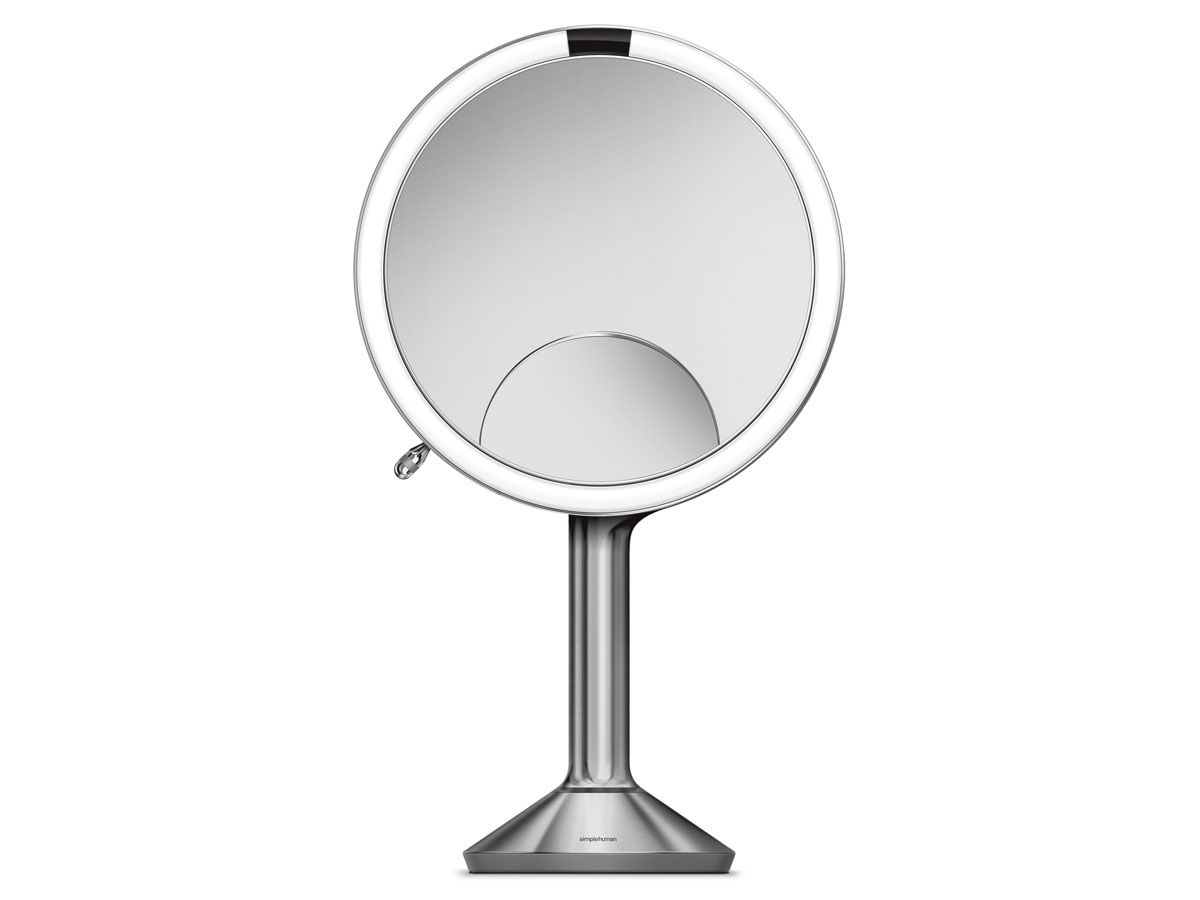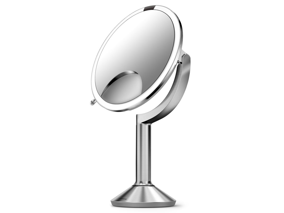 Eleganckie nablatowe wolnostojące lusterko kosmetyczne z 3 strefami powiększenia 1x, 5x i 10x oraz z automatycznym podświetleniem z regulacją jasności światła.