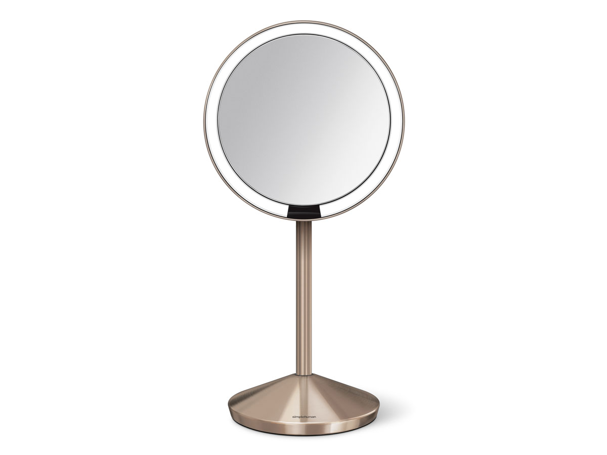 Eleganckie podróżne nablatowe wolnostojące lusterko kosmetyczne z 10-krotnym powiększeniem oraz z automatycznym podświetleniem.